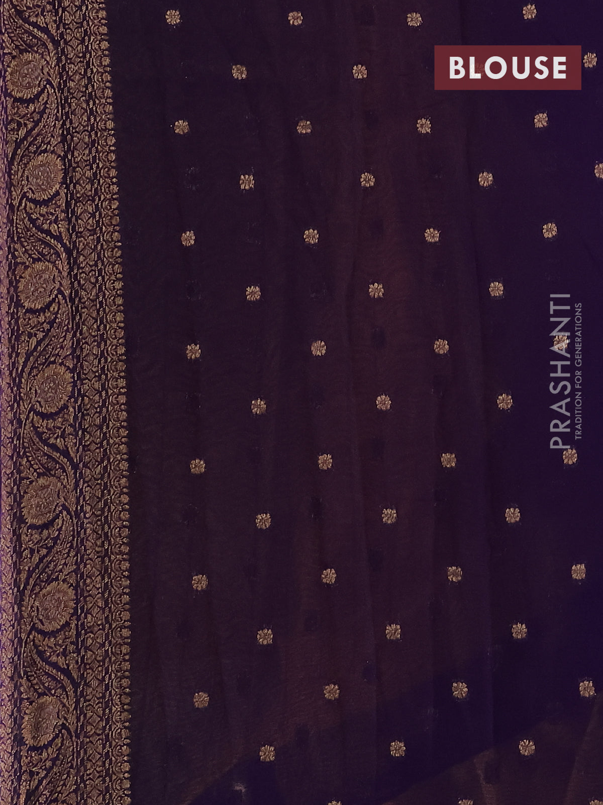 Banarasi semi georgette saree lime yellow and violet with allover thread & zari woven buttas and woven border