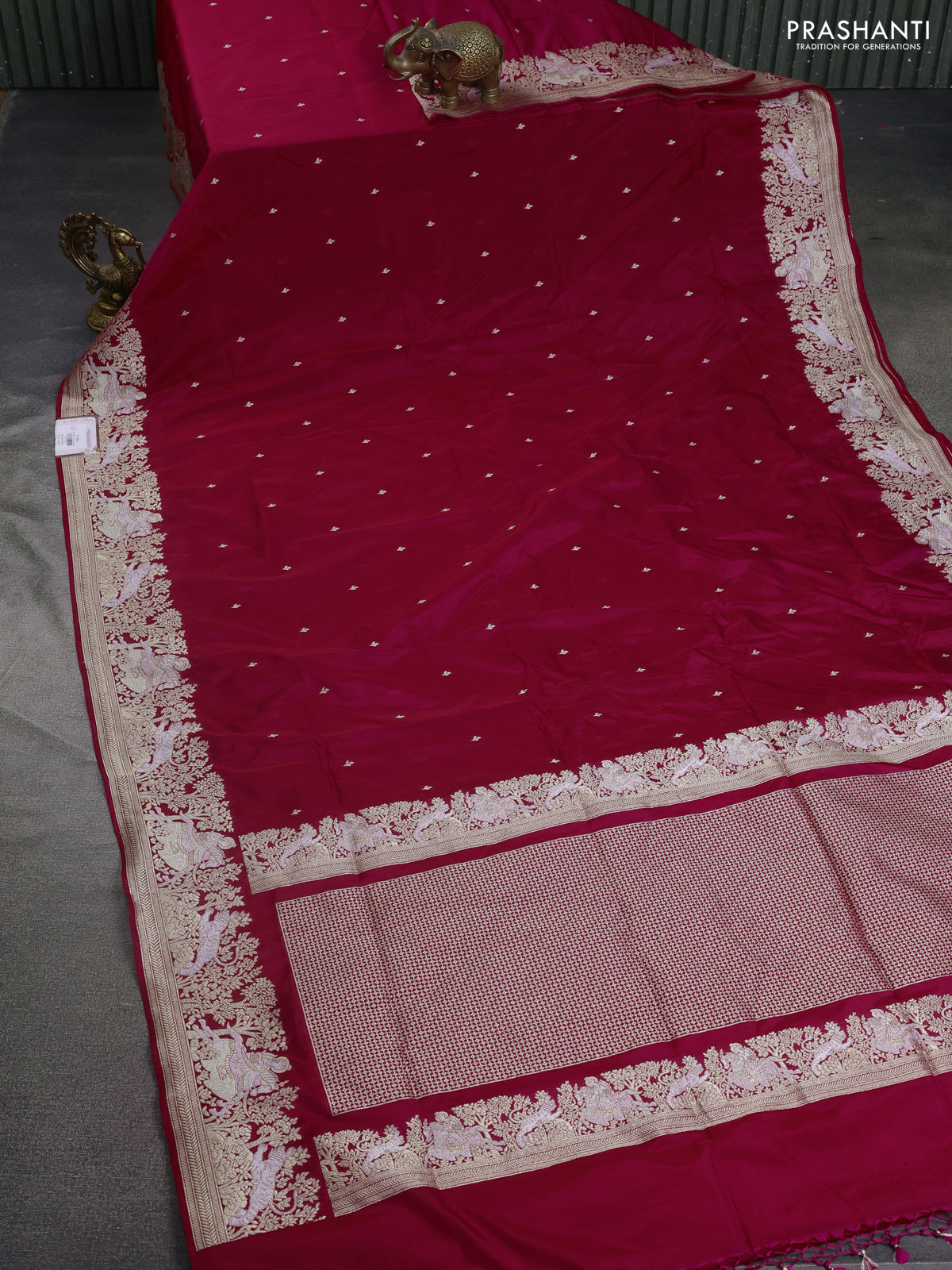 Banarasi semi katan silk saree pink with silver zari woven buttas and rich zari woven border