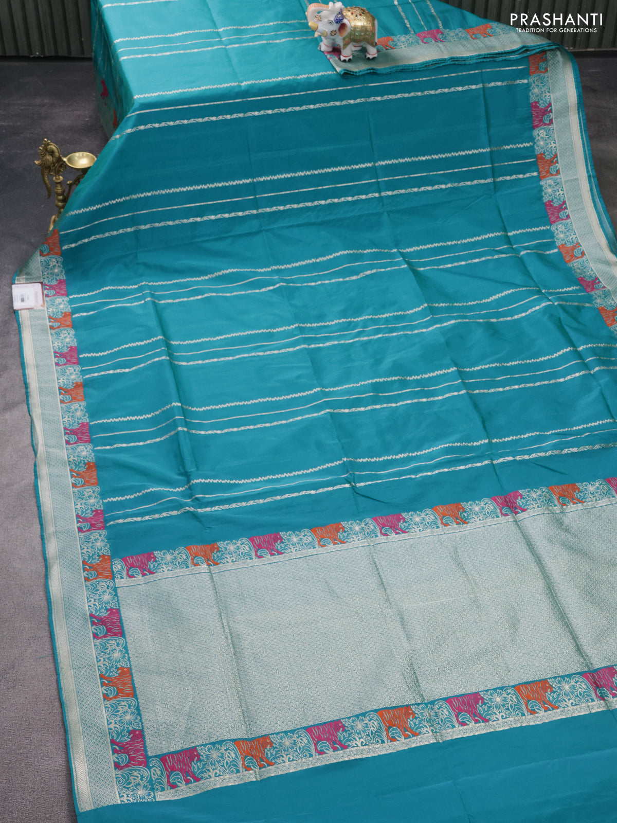 Banarasi semi katan silk saree teal blue with allover zari weaves and rich zari woven border