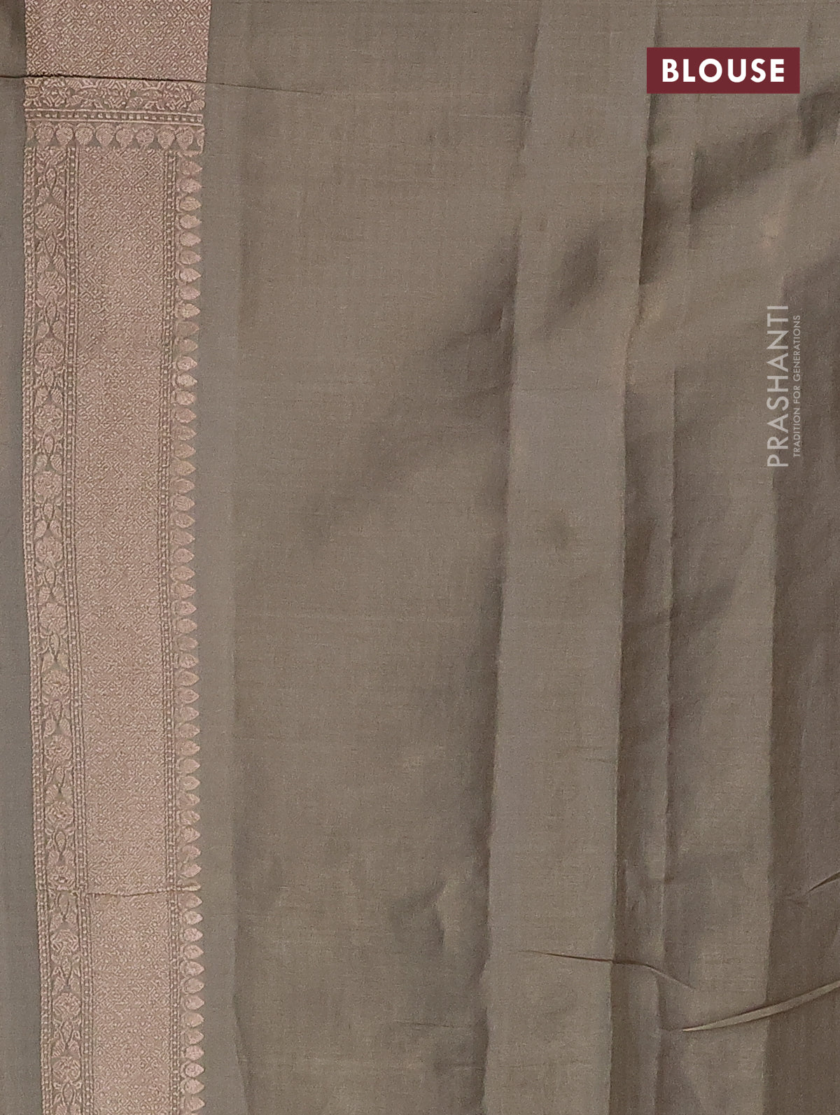 Banarasi tissue silk saree greyish green with allover silver & gold zari weaves and zari woven border