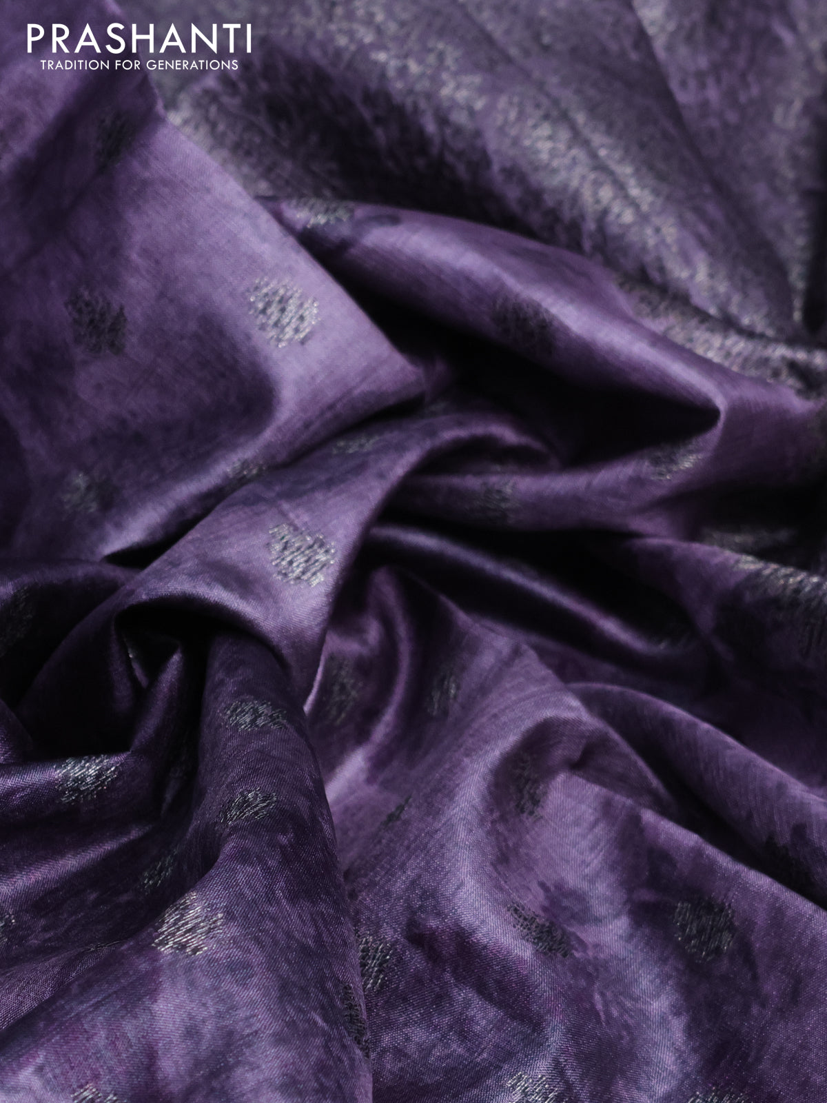 Banarasi tussar silk saree pastel lavender with woven buttas & digital prints in borderless style