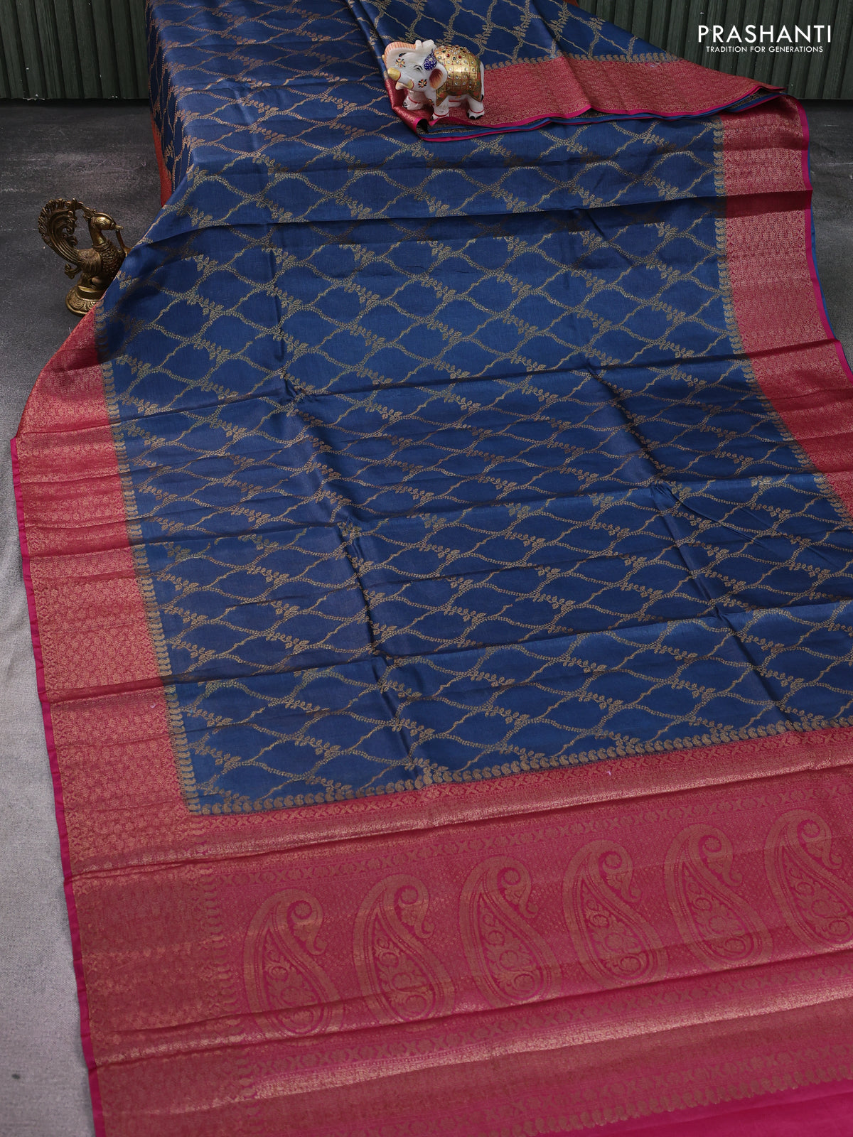 Banarasi tussar silk saree peacock blue and pink with allover thread & zari woven buttas and woven border