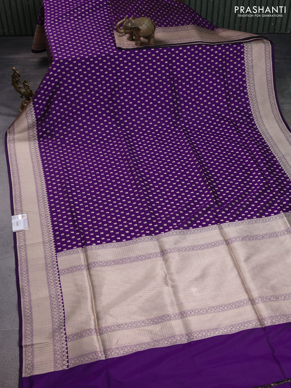 Banarasi uppada silk saree violet with allover zari woven butta weaves and zari woven border