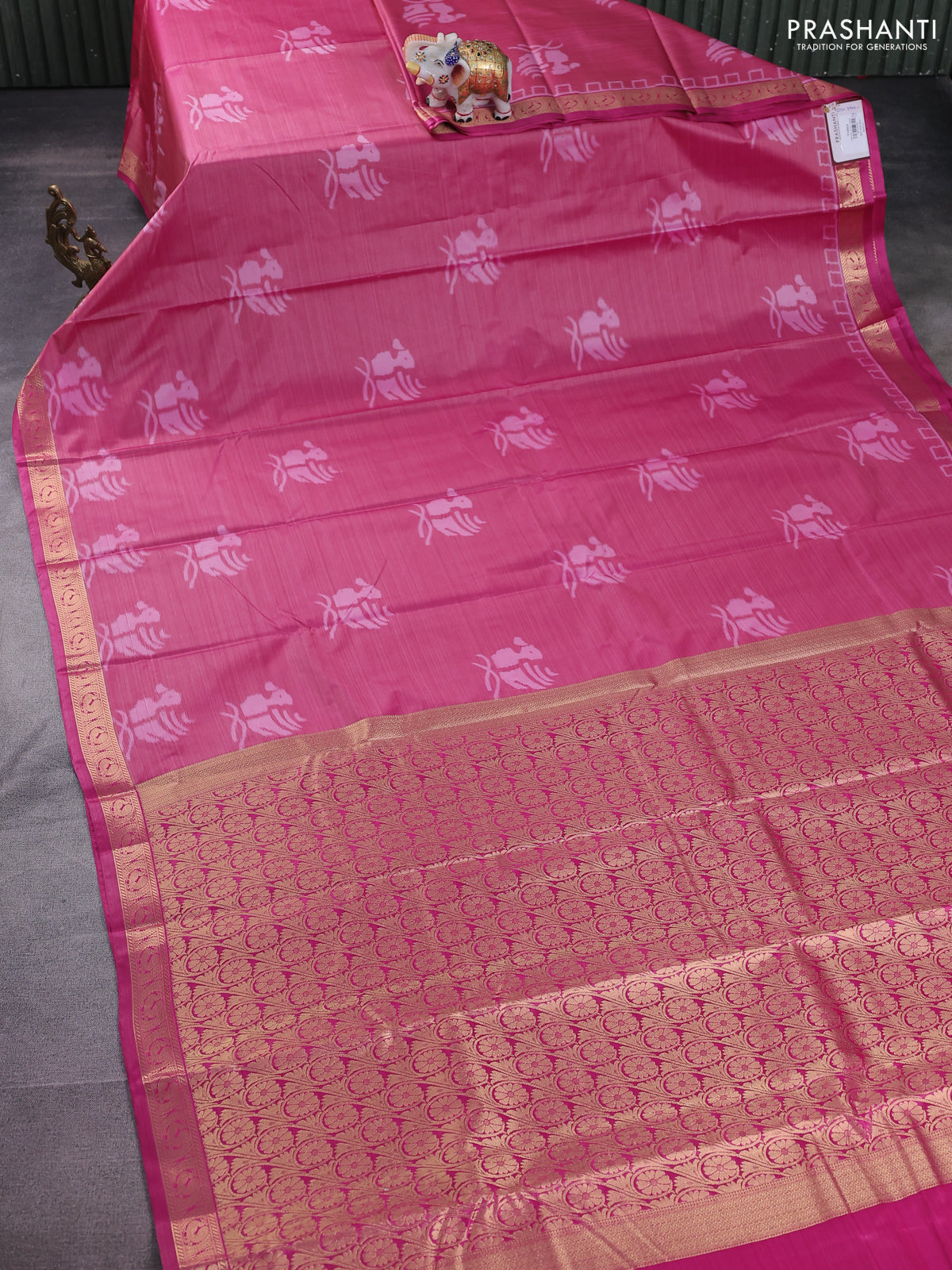 Bangalori semi silk saree pink with allover ikat butta weaves and zari woven border