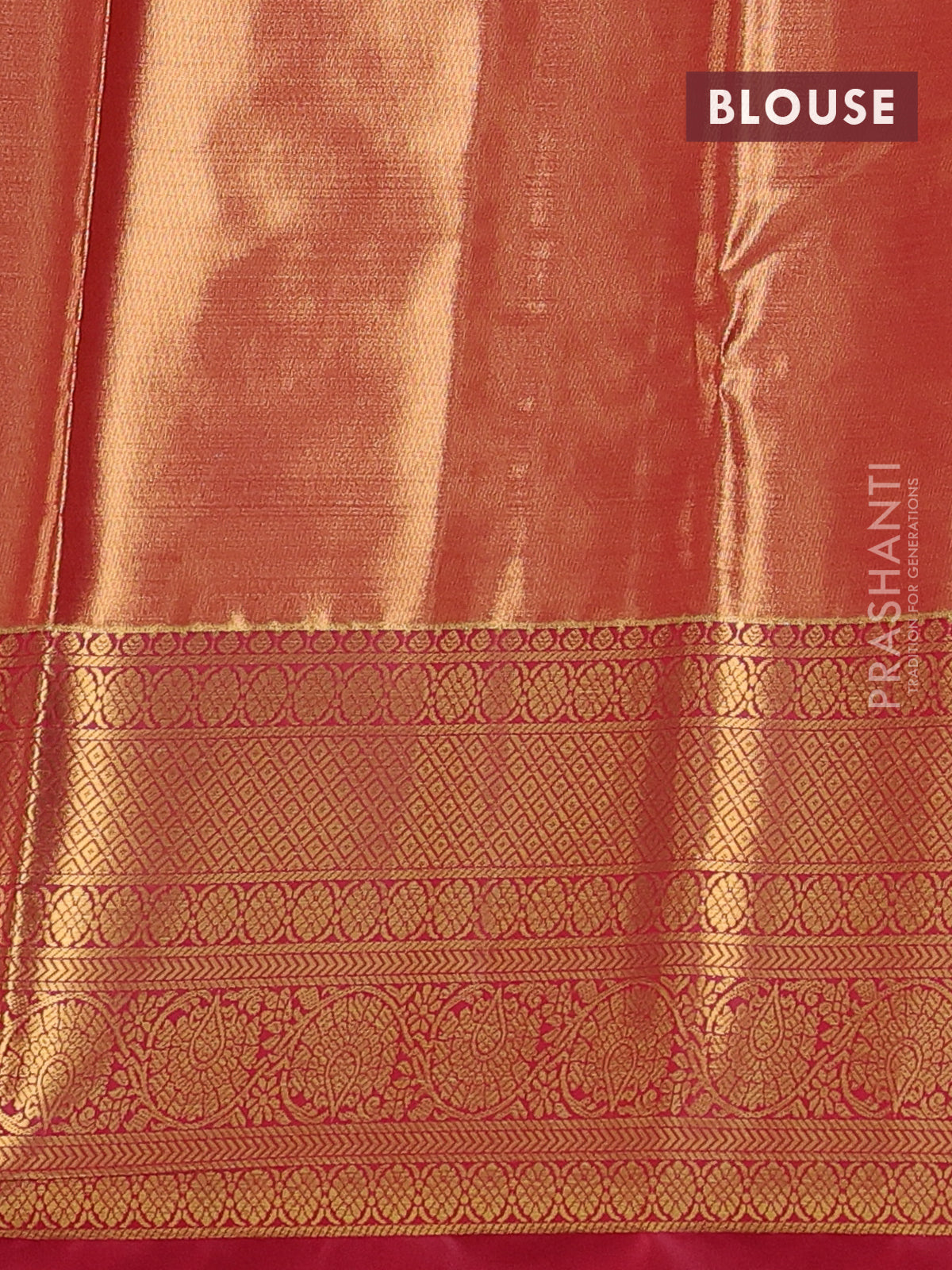 Bangalori tissue silk saree teal green shade and pink with allover zari woven brocade weaves and long zari woven border