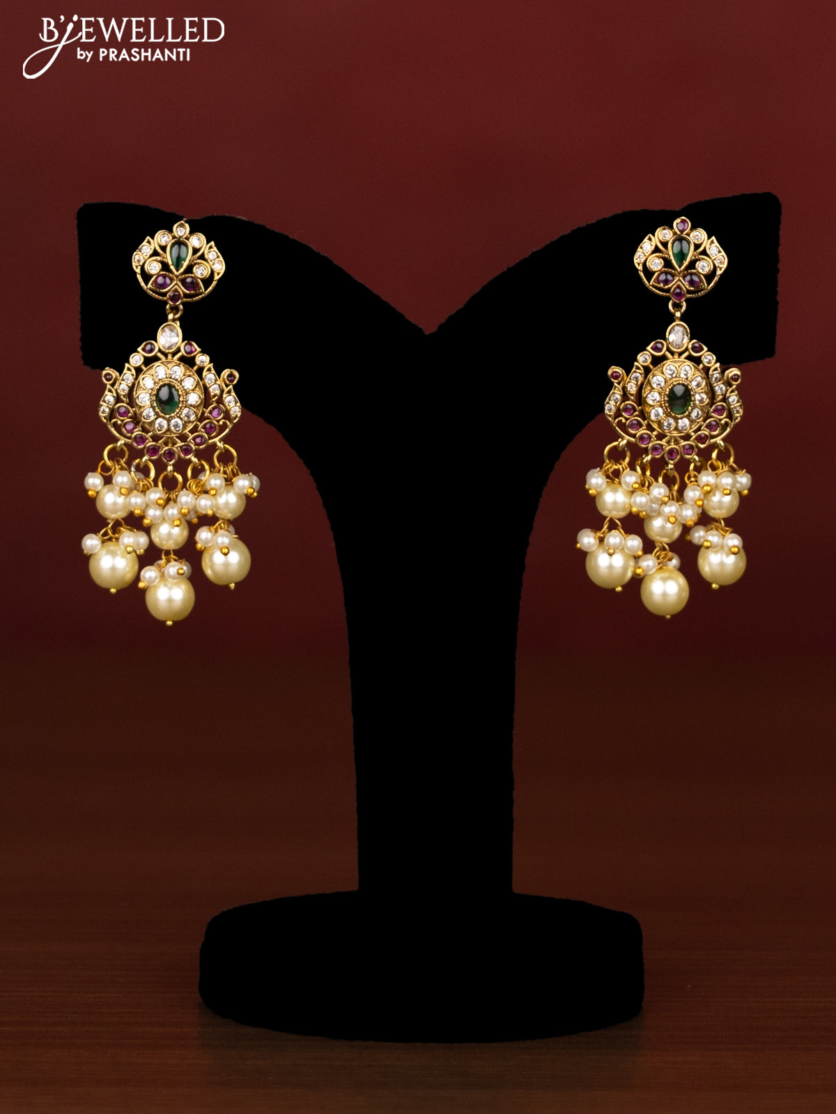 Beaded multilayer mint green necklace peacock design with kemp,cz stones and pearl hangings