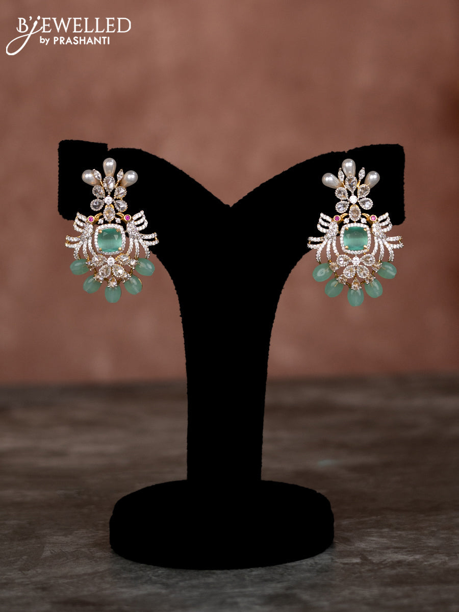 Beaded multilayer mint green necklace with cz stones and pearl & mint green beads
