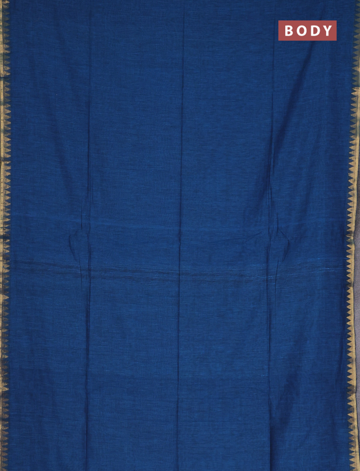 Bengal soft cotton saree cs blue and red with plain body and zari woven border