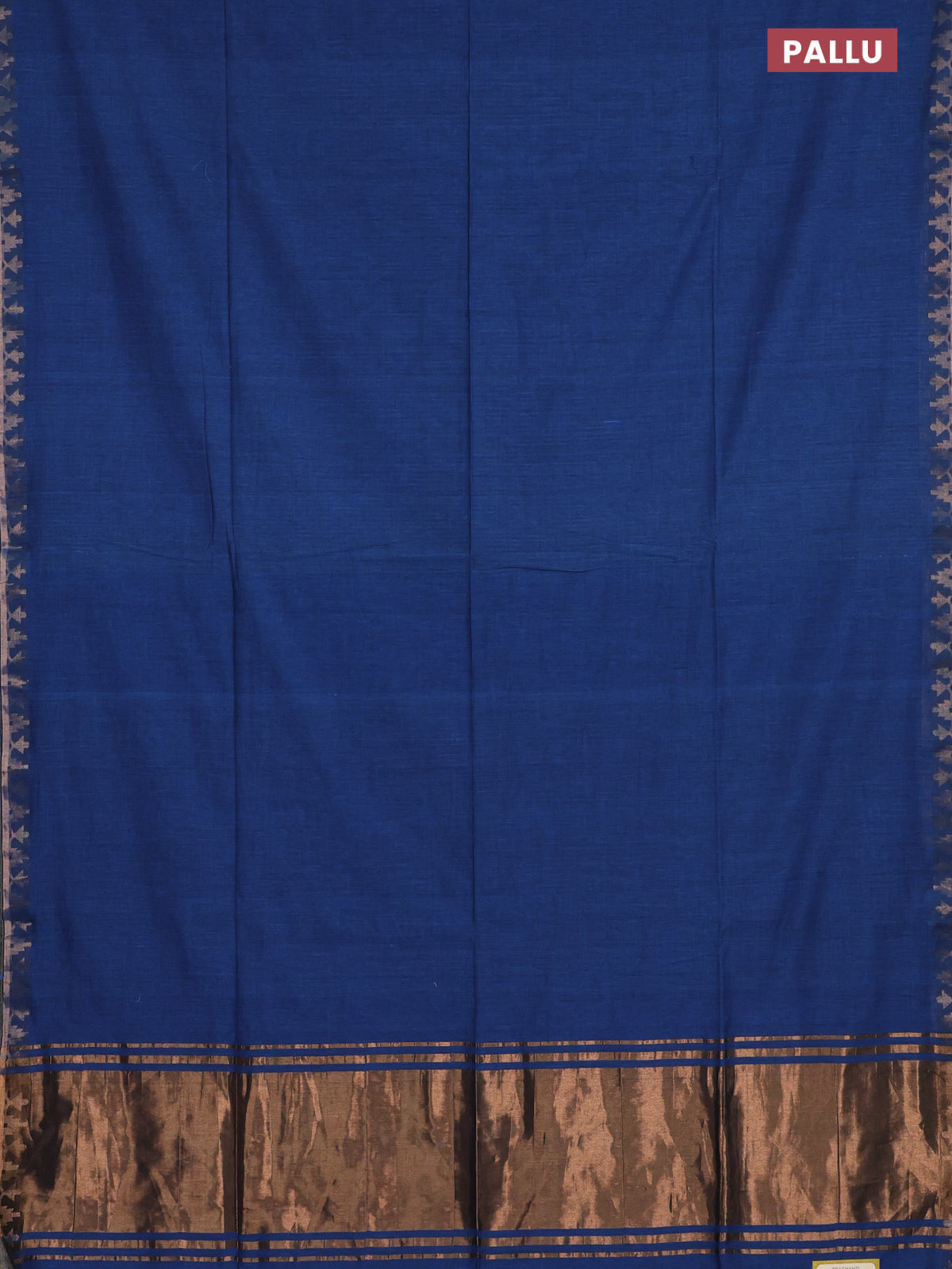 Bengal soft cotton saree cs blue and yellow with plain body and zari woven border