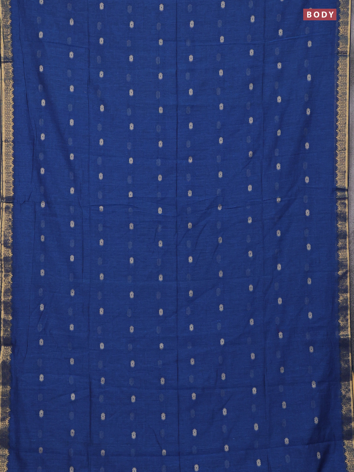Bengal soft cotton saree cs blue with thread woven buttas and zari woven border