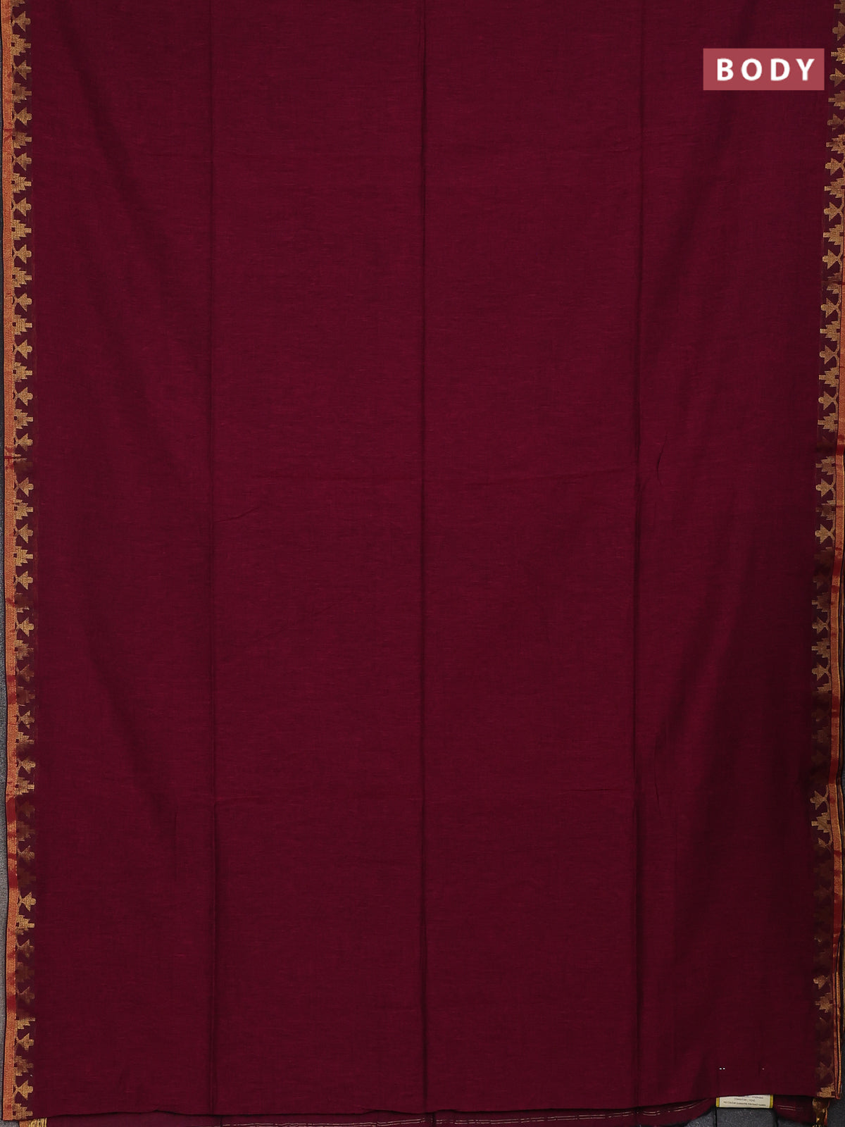Bengal soft cotton saree dark magenta pink and green with plain body and zari woven border