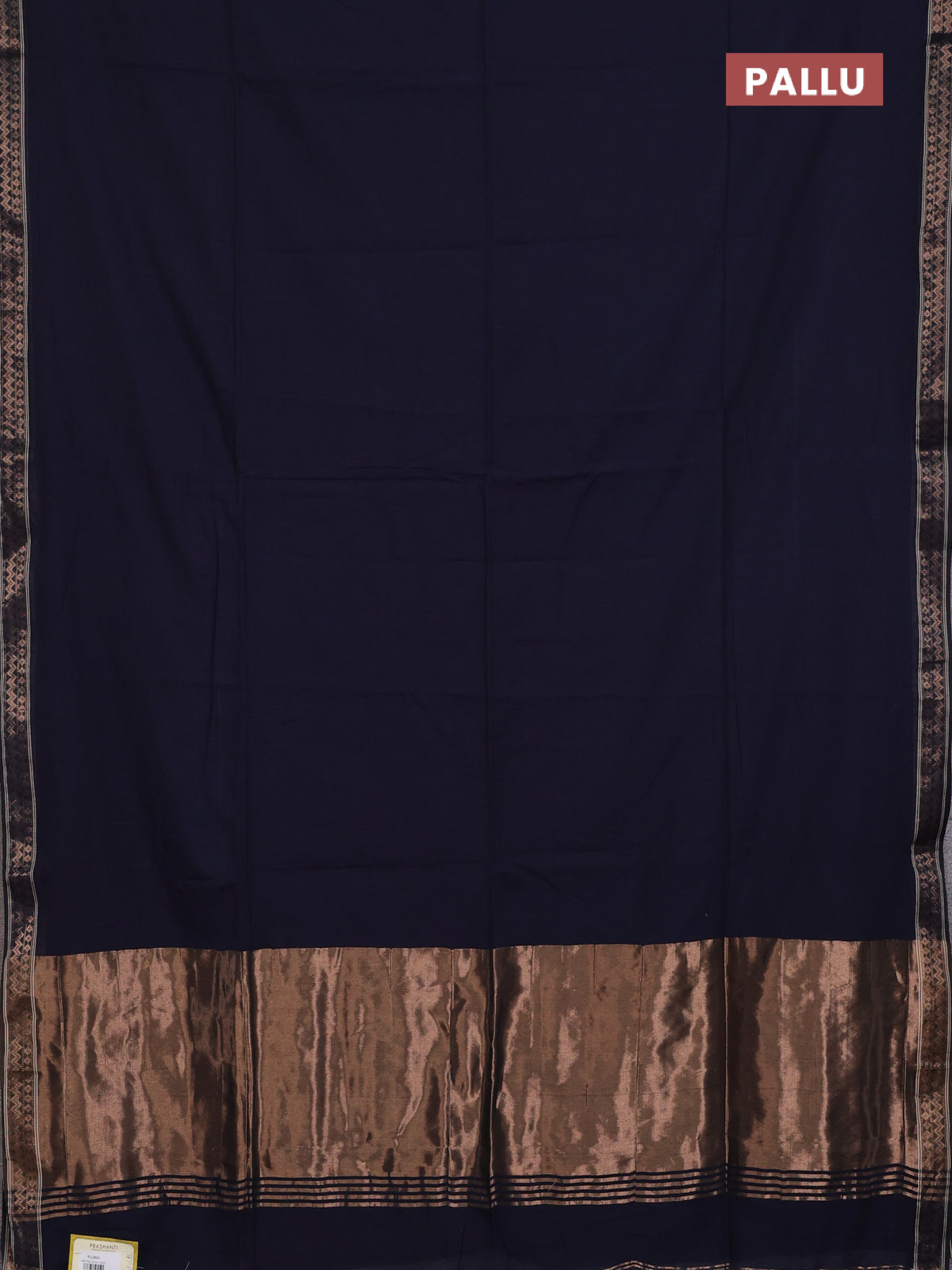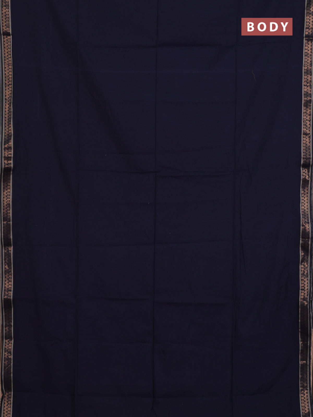Bengal soft cotton saree navy blue and brown with plain body and zari woven border
