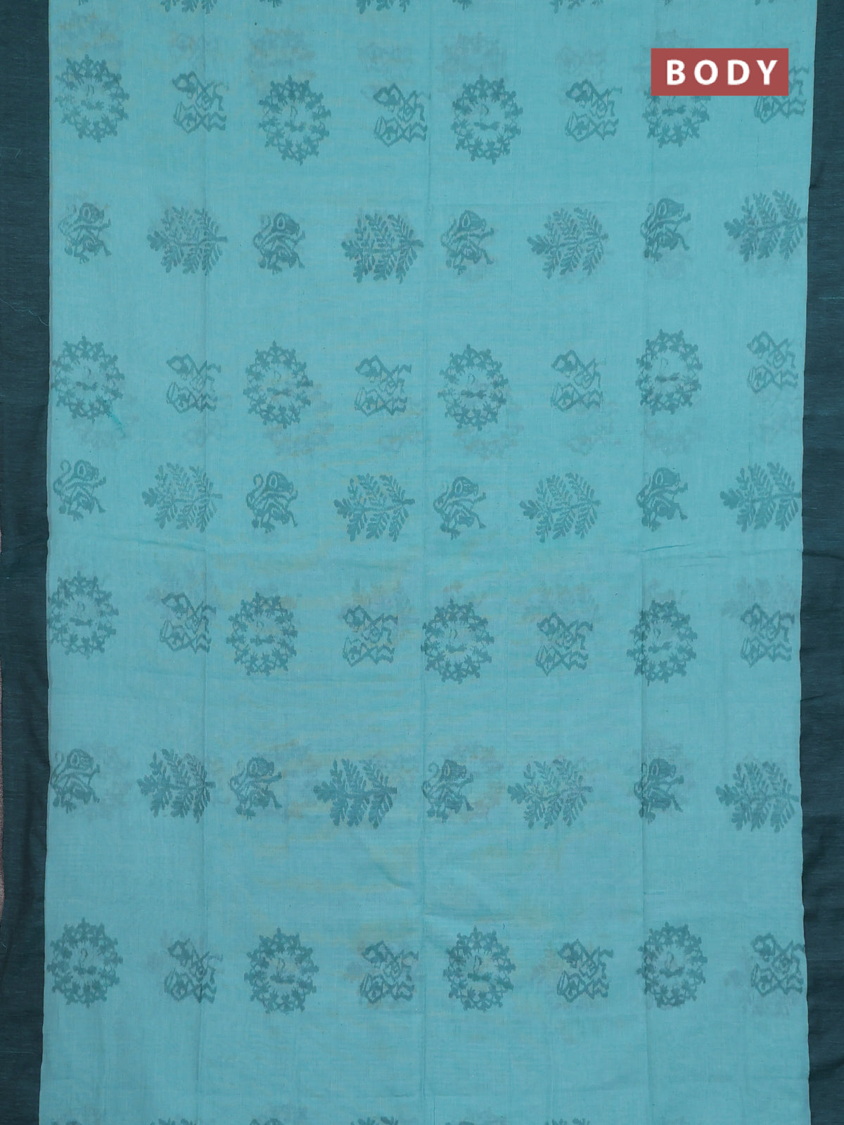 Bengal soft cotton saree teal blue and blue with butta weaves and simple border
