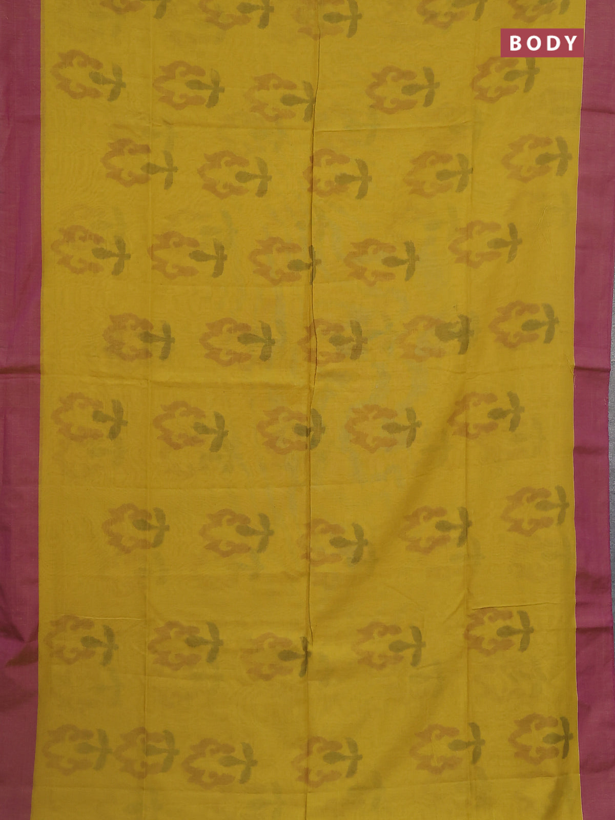 Bengal soft cotton saree yellow and purple with allover weaves and simple border