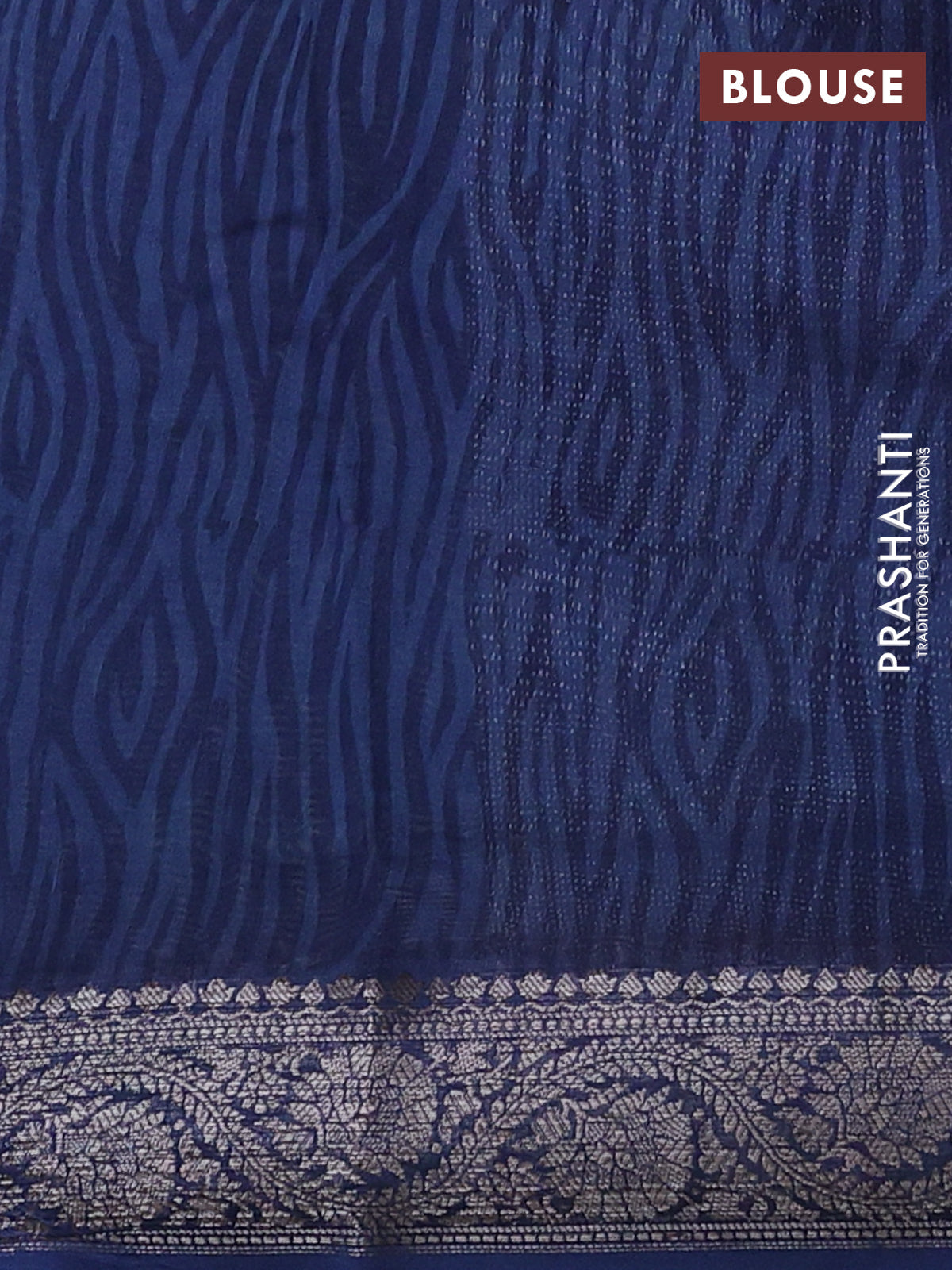 Chanderi silk cotton saree beige and peacock blue with allover butta prints and banarasi style border