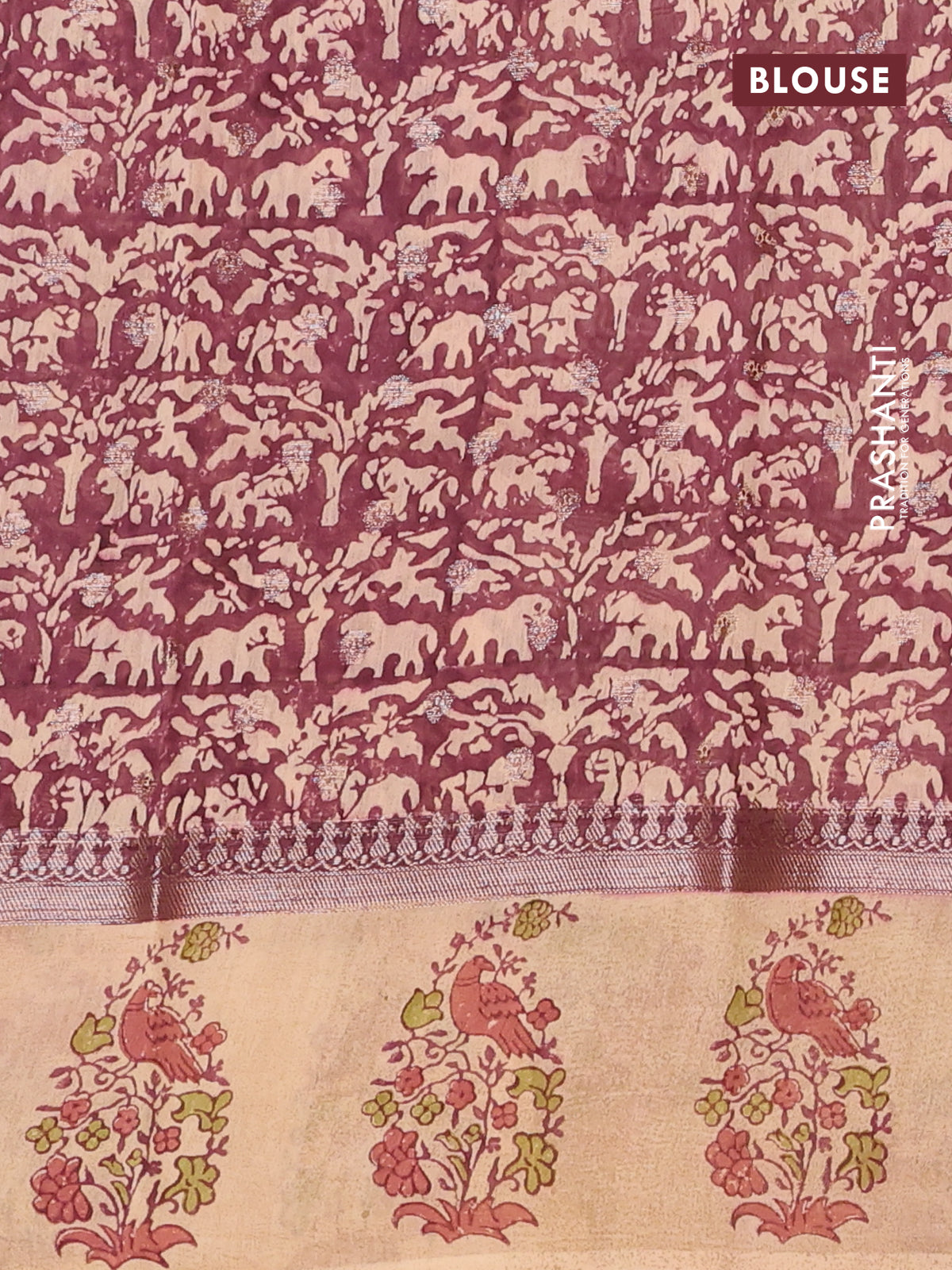 Chanderi silk cotton saree rust shade and beige with allover zari buttas & prints and printed butta border