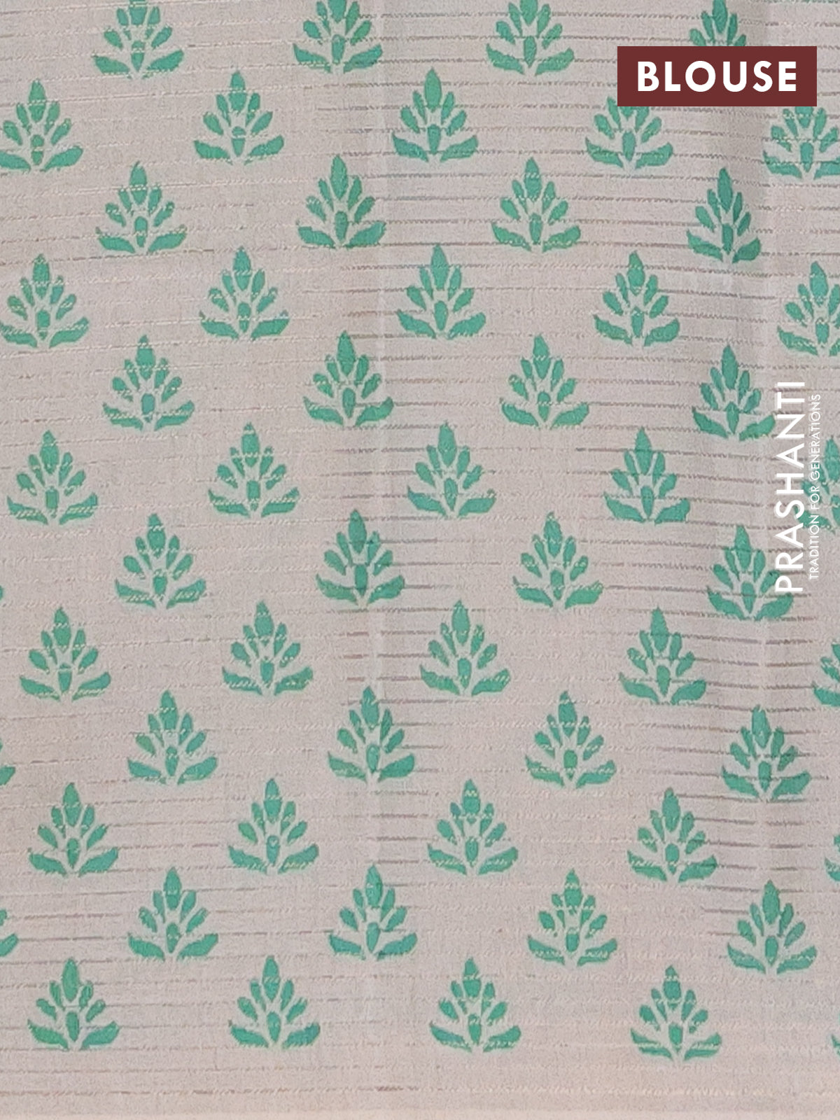 Chappa saree beige and teal green with allover small zari checked pattern and printed border