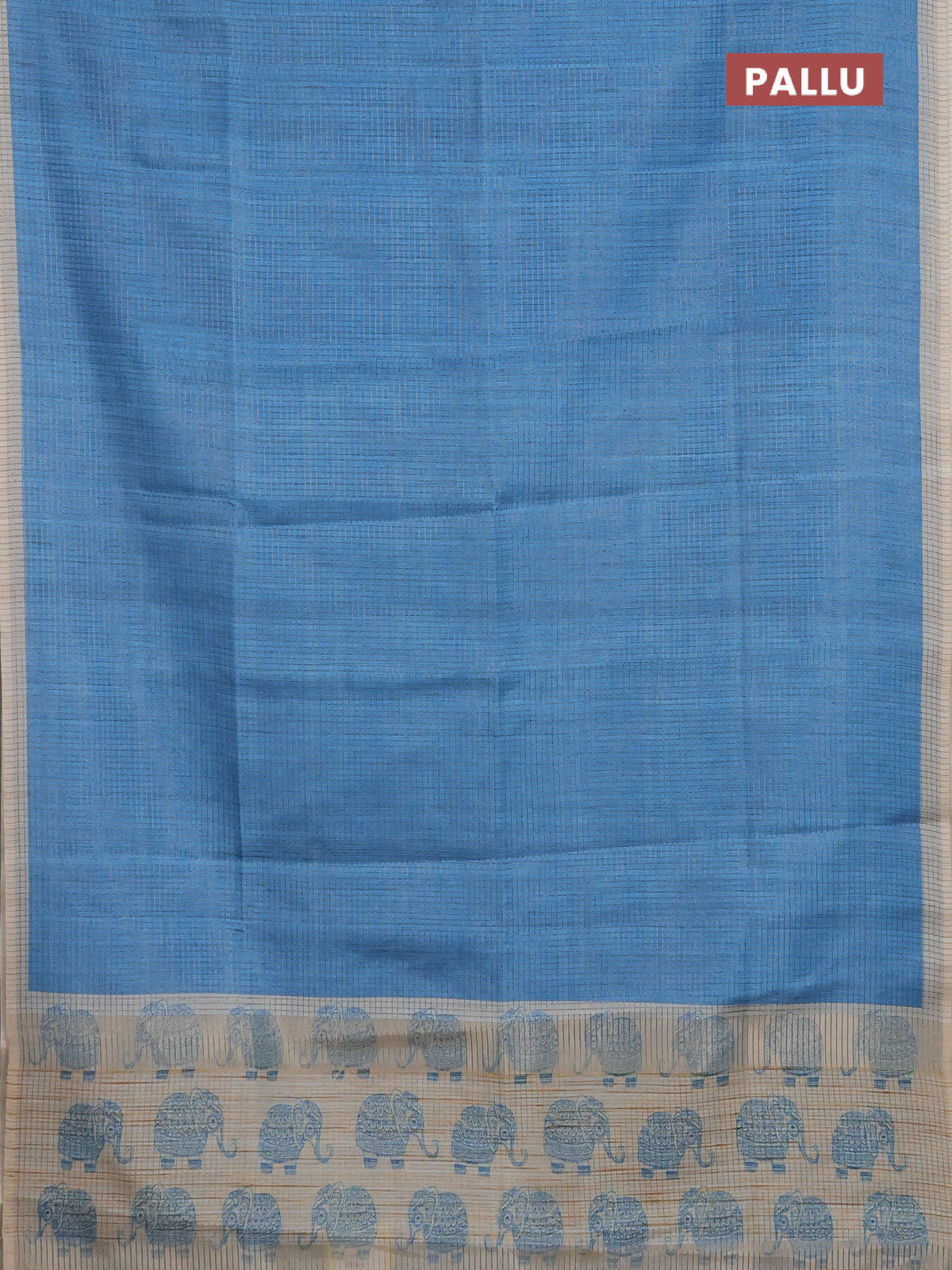 Chappa saree light blue and grey with allover small zari checked pattern and elephant butta prints
