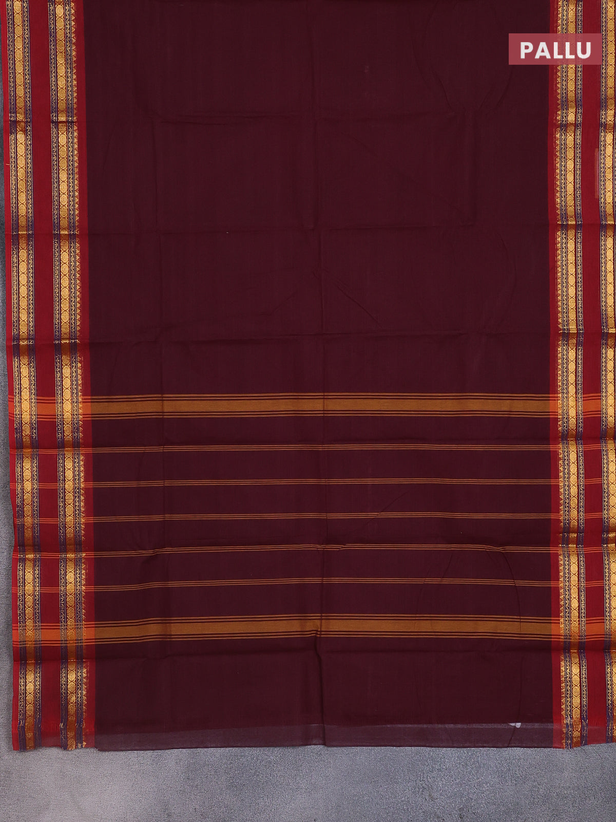 Chettinad cotton saree brown and maroon with thread woven buttas and rattapet zari woven border