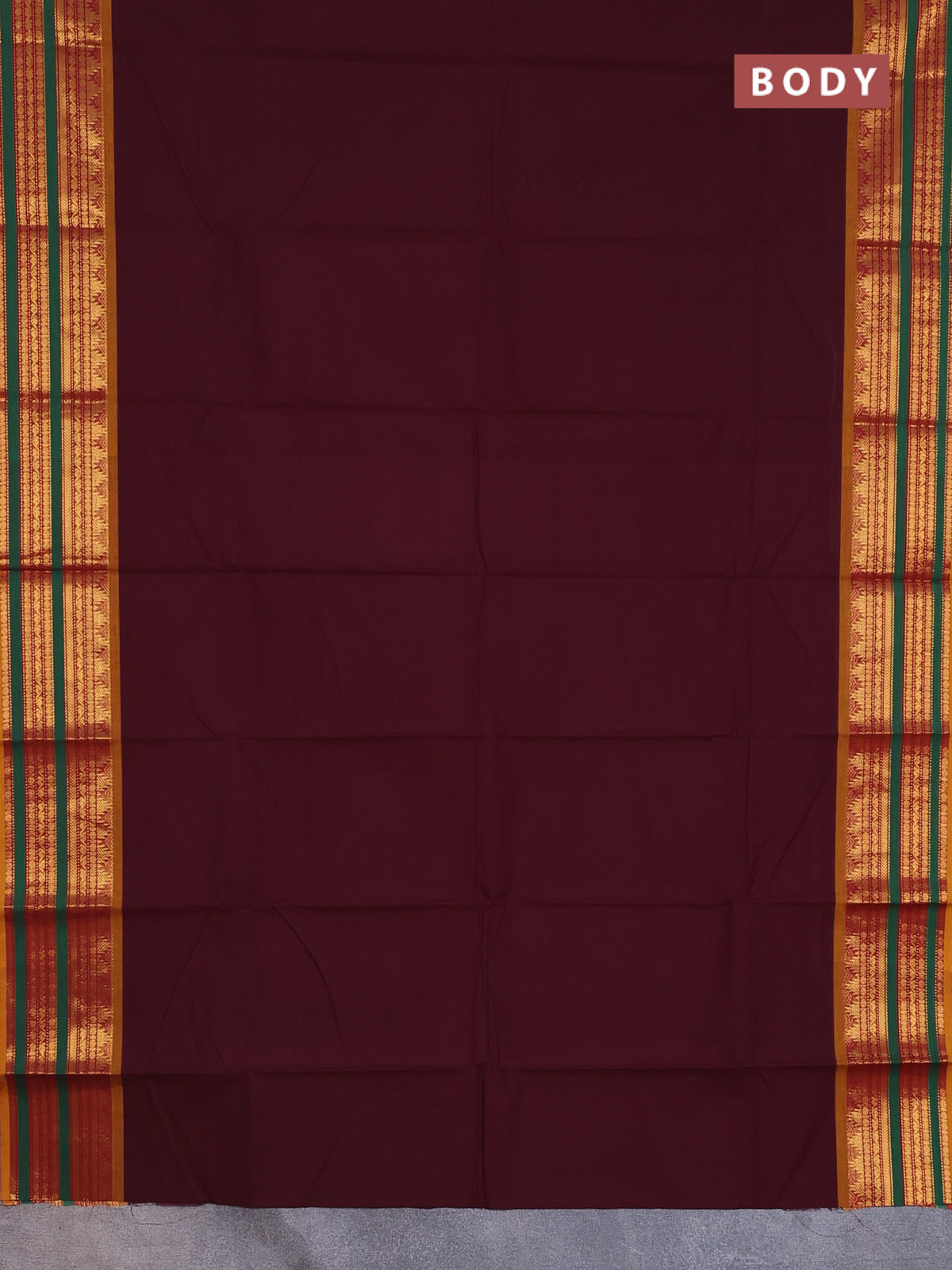Chettinad cotton saree brown and mustard yellow with thread woven buttas and zari woven border