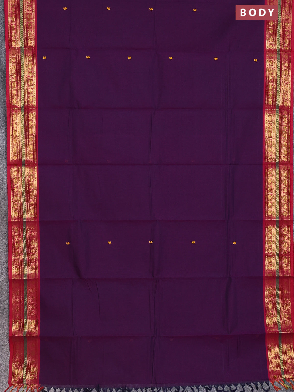 Chettinad cotton saree deep purple and pink with thread woven buttas and zari woven border