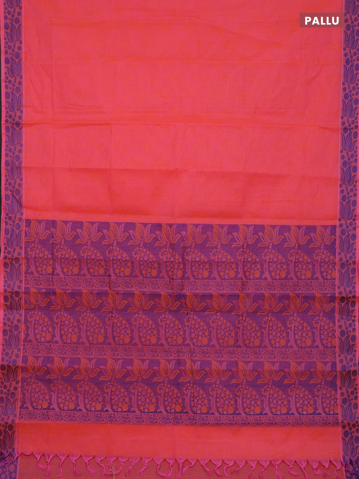 Coimbatore cotton saree dual shade of orange and blue with allover self emboss and thread woven border