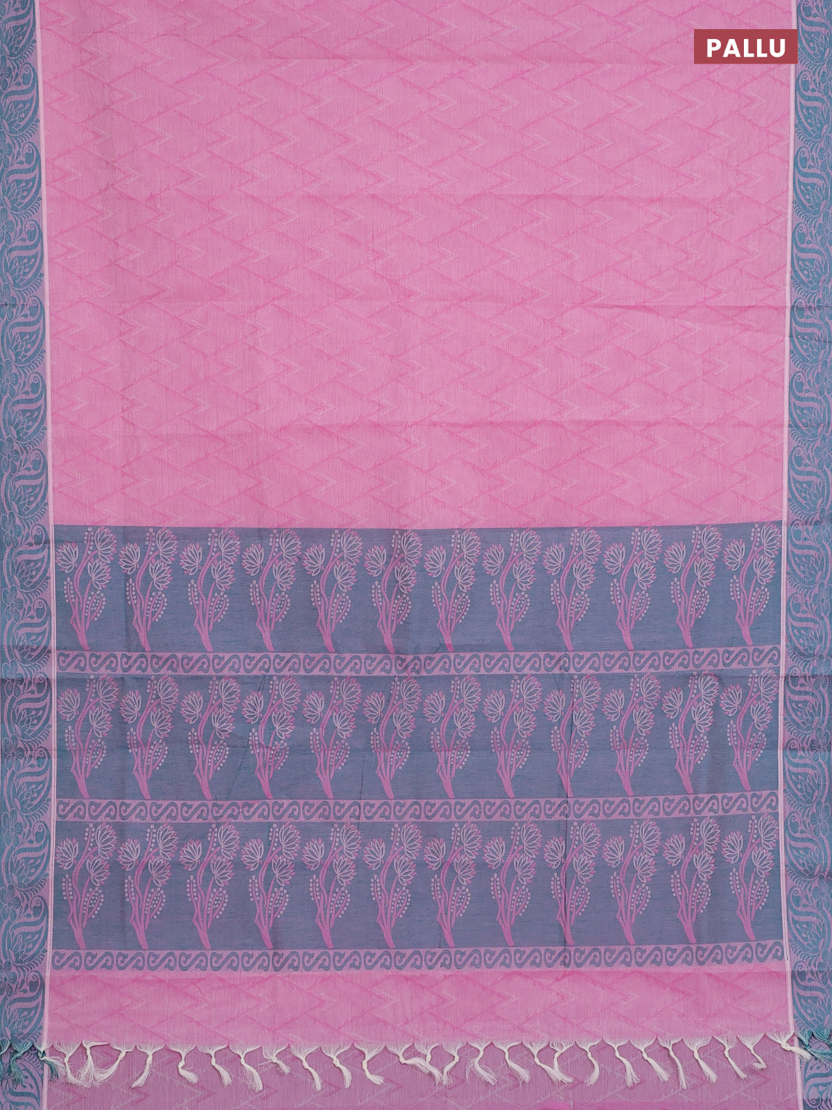 Coimbatore cotton saree light pink and teal green with allover self emboss and thread woven border