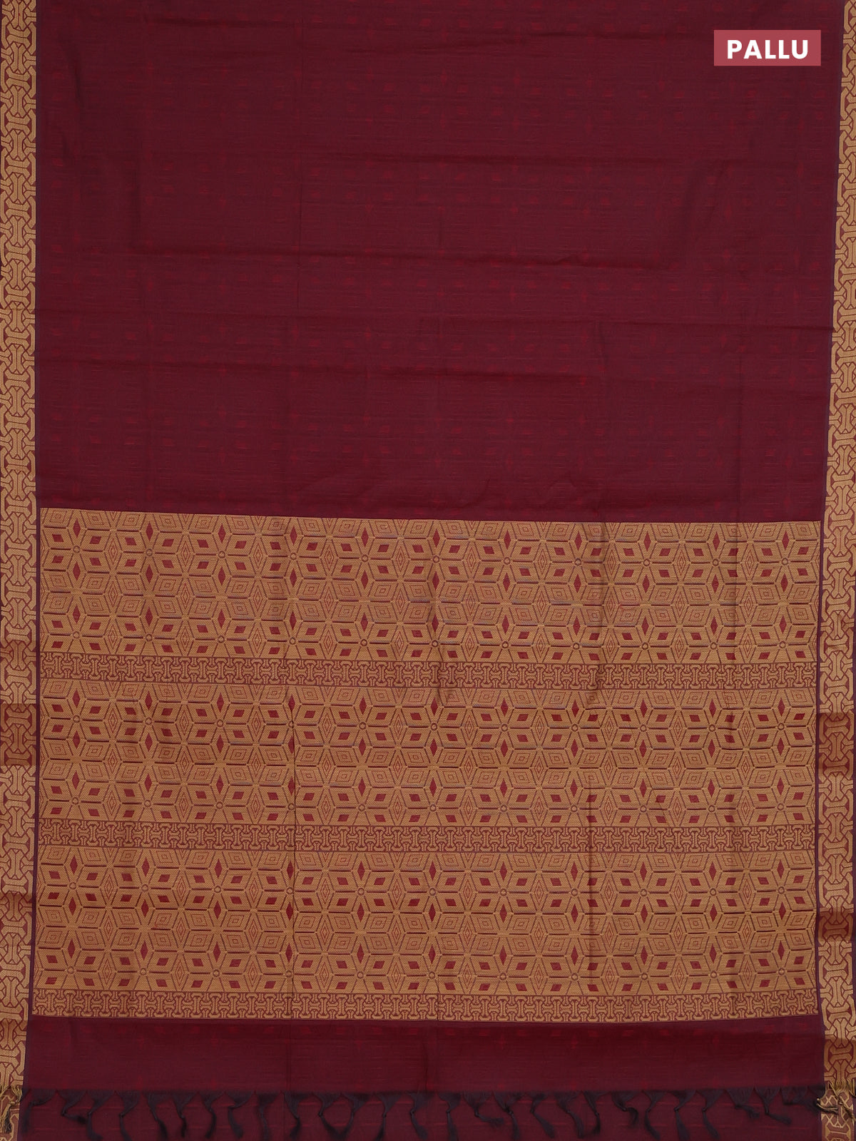 Coimbatore cotton saree maroon and sandal with allover self emboss and thread woven border