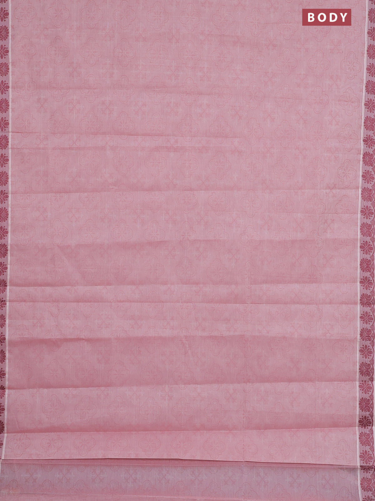 Coimbatore cotton saree pastel pink and maroon with allover self emboss and thread woven border