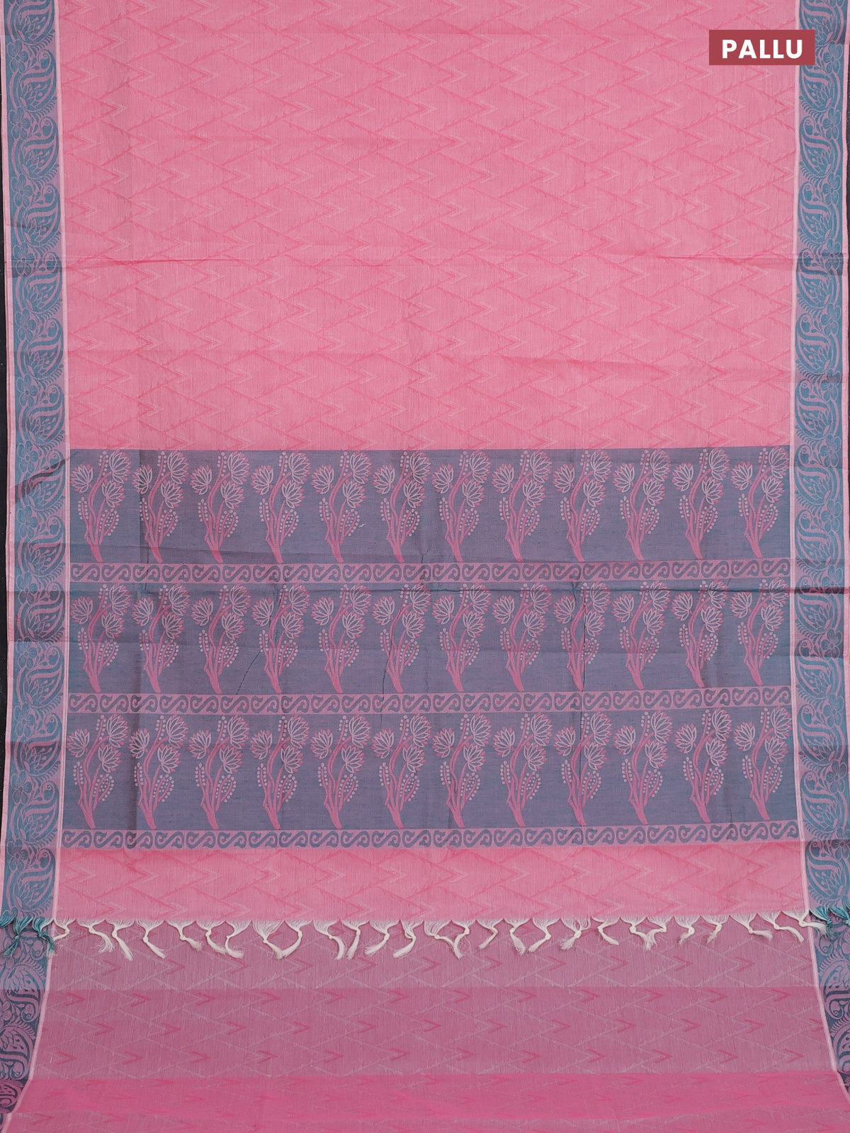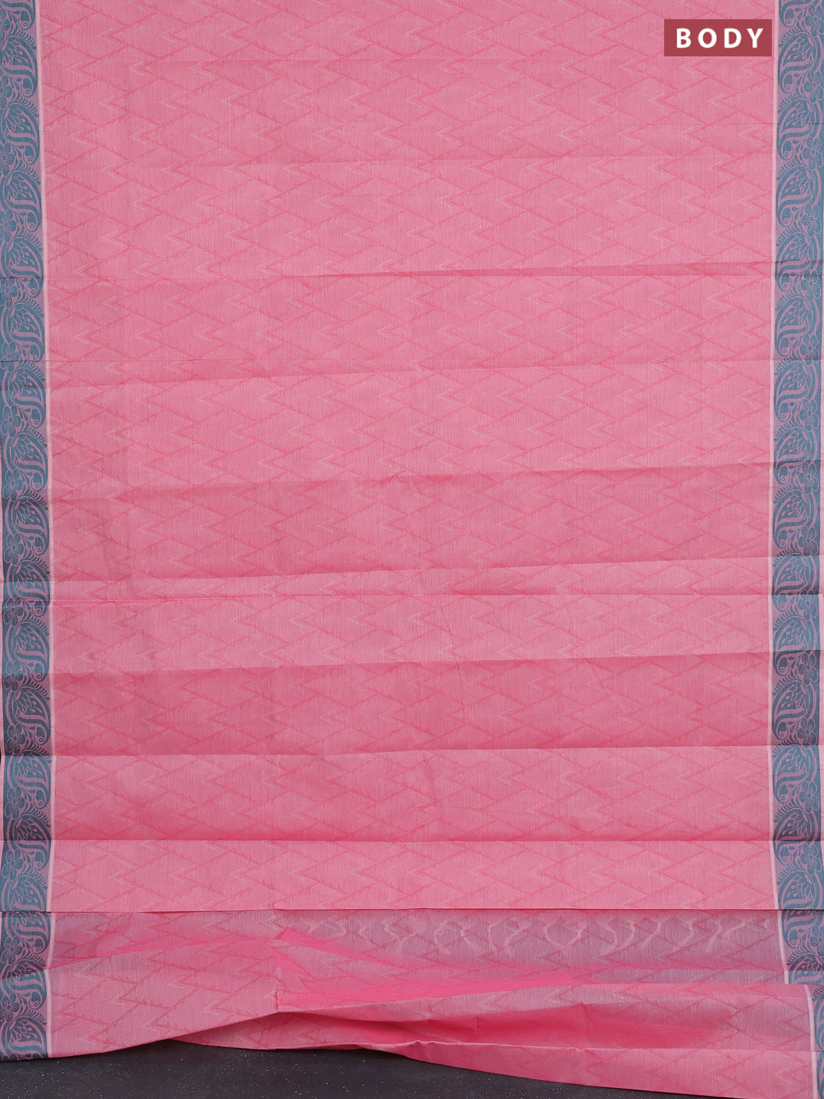 Coimbatore cotton saree peach pink and teal green with allover self emboss and thread woven border