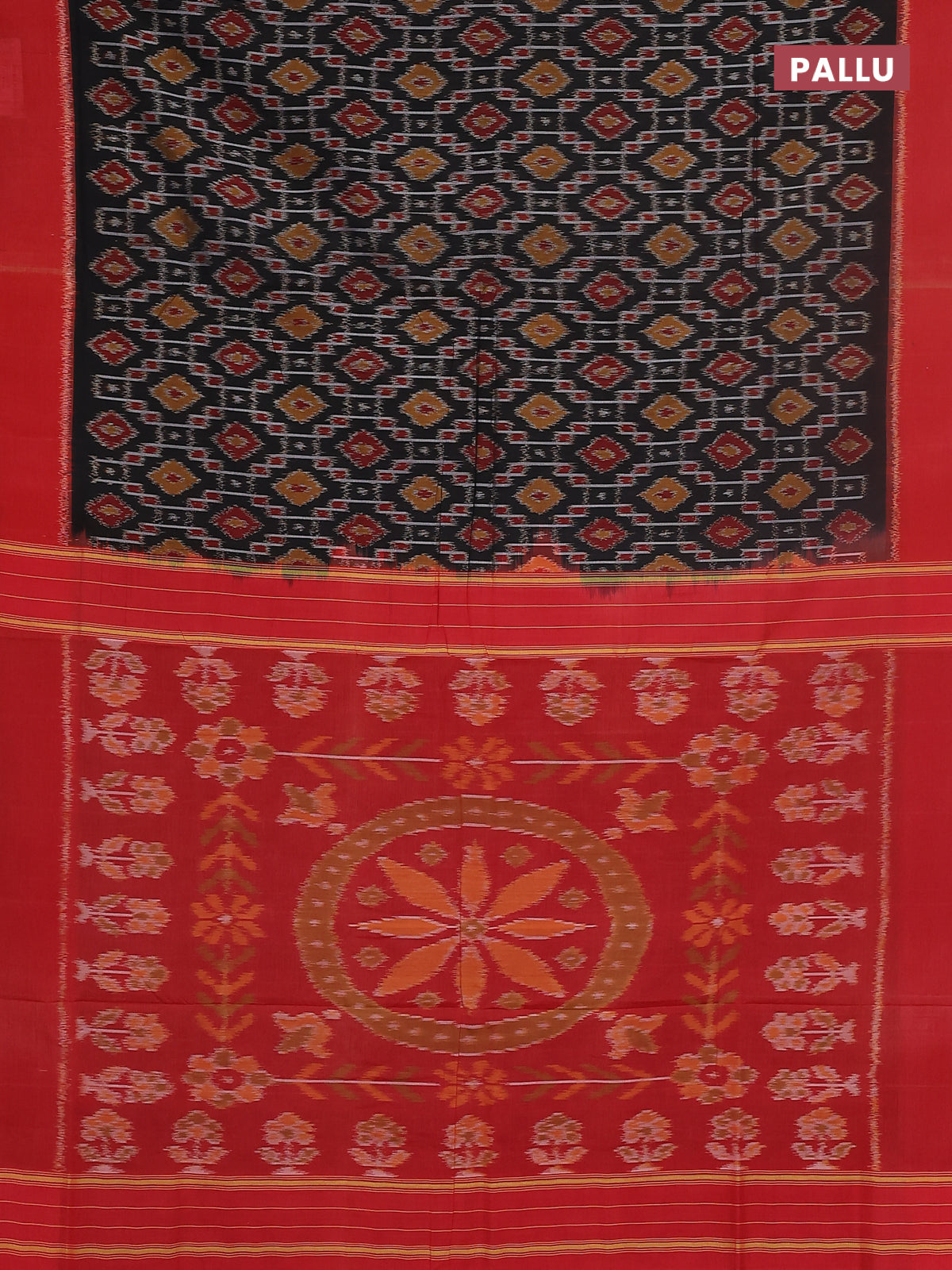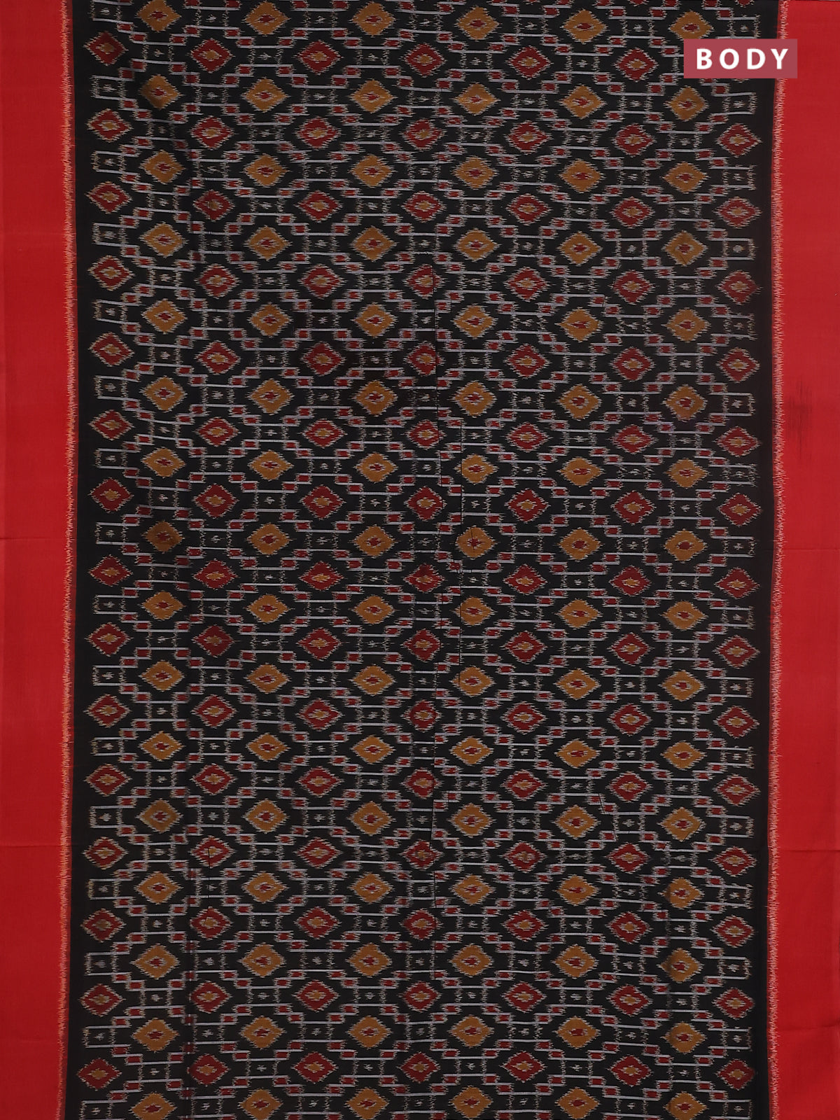 Ikat cotton saree black and red with allover ikat weaves and simple border