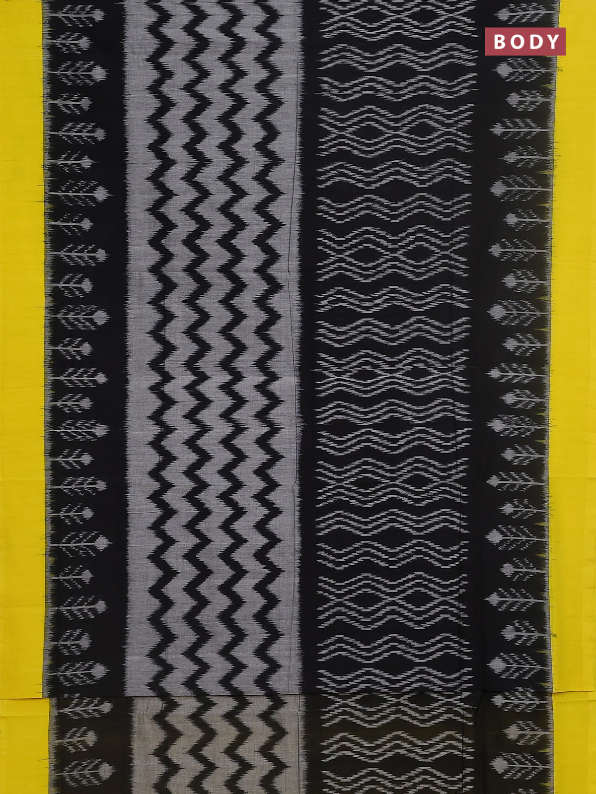 Ikat cotton saree black and yellow with allover ikat weaves and simple border