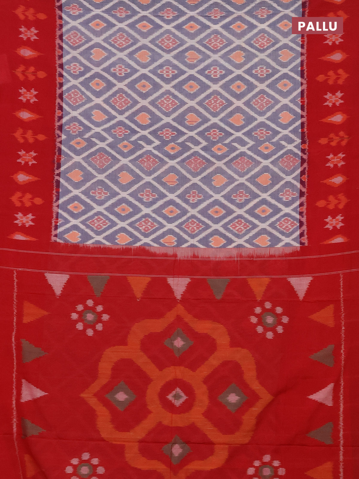 Ikat cotton saree blue shade and red with allover ikat weaves and ikat border