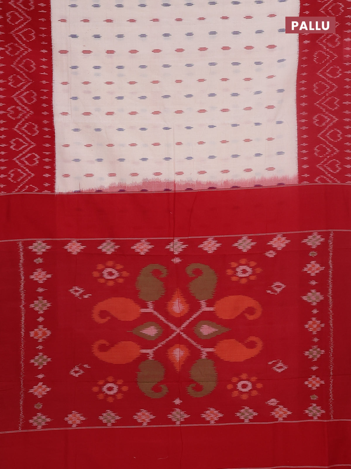 Ikat cotton saree cream and red with allover ikat butta weaves and long ikat style border