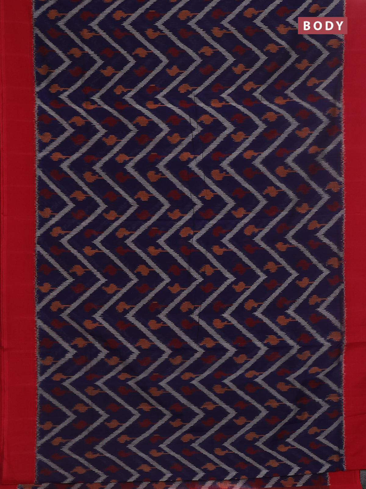 Ikat cotton saree dark blue and red with allover zig zag ikat weaves and simple border