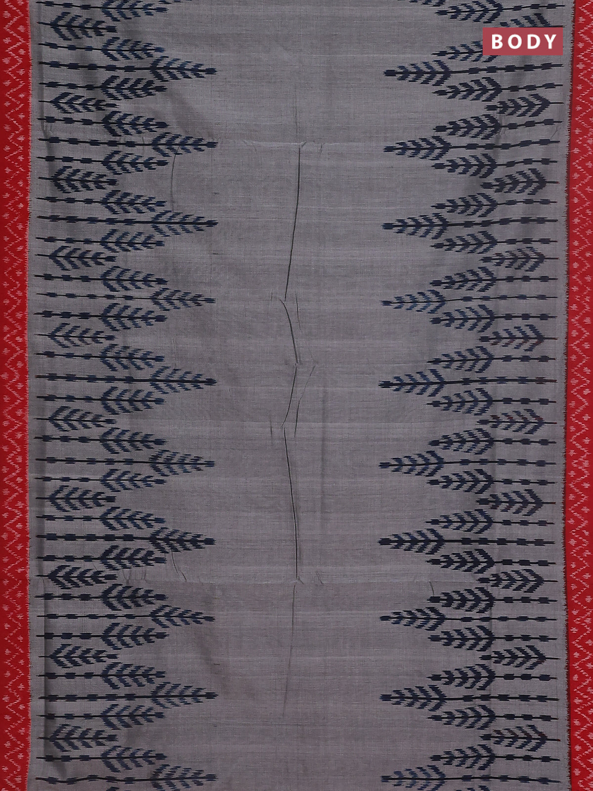 Ikat cotton saree grey and kumkum red with plain body and ikat style border