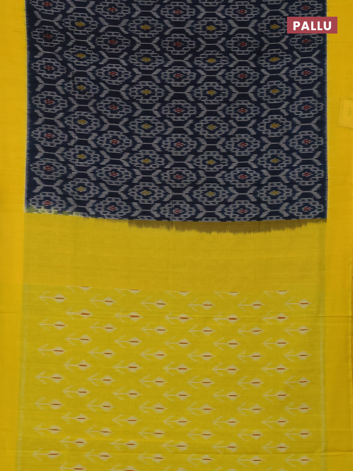 Ikat cotton saree peacock blue and yellow with allover ikat weaves and simple border