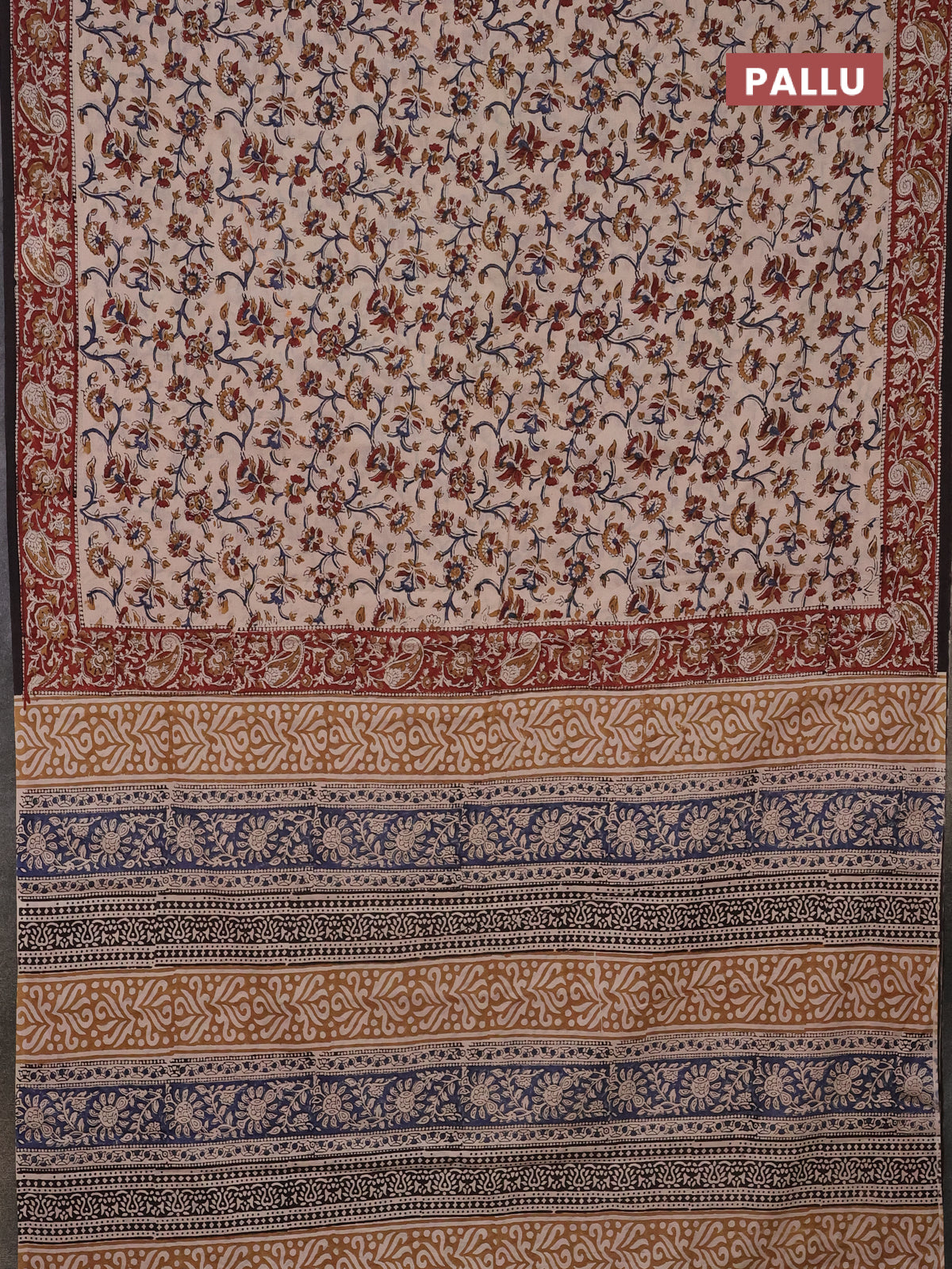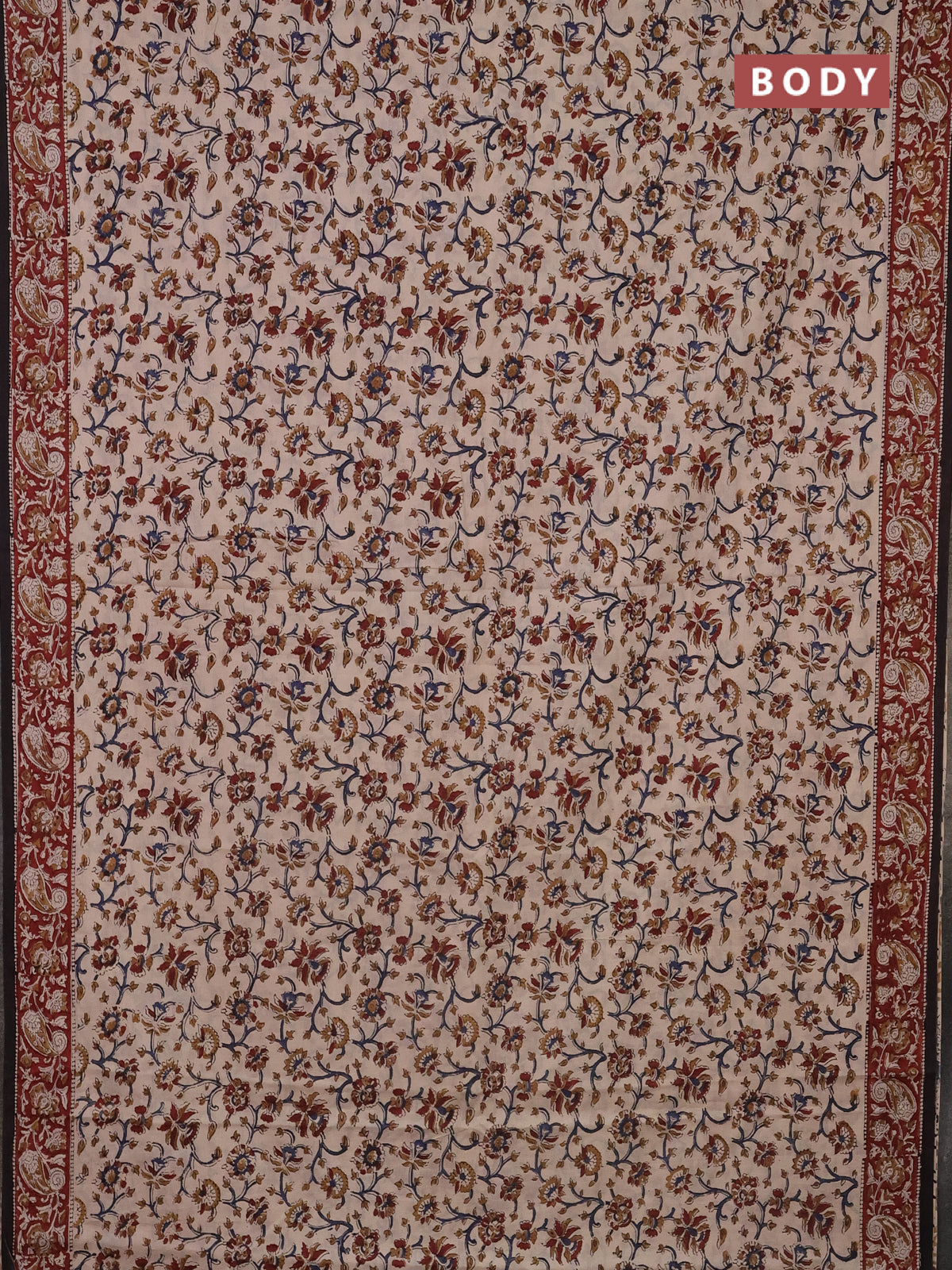 Jaipur cotton saree beige and maroon black with allover kalamkari prints and printed border