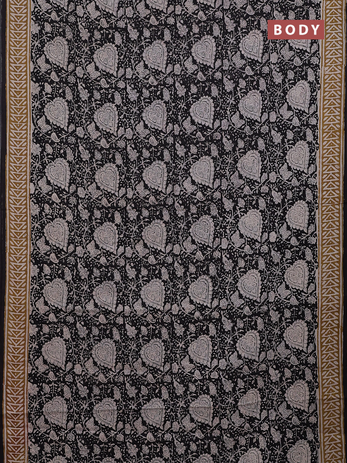 Jaipur cotton saree black and sandal with allover kalamkari prints and printed border