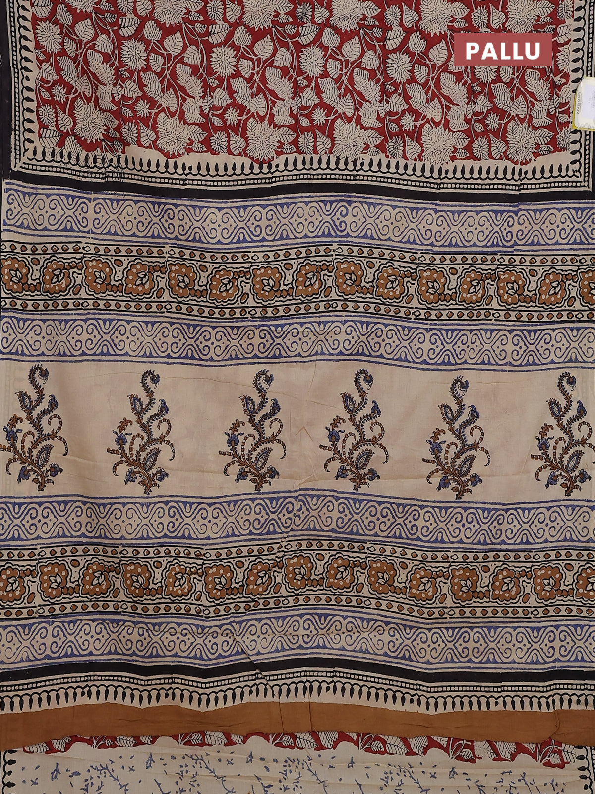 Jaipur cotton saree maroon and black with allover kalamkari prints and printed border