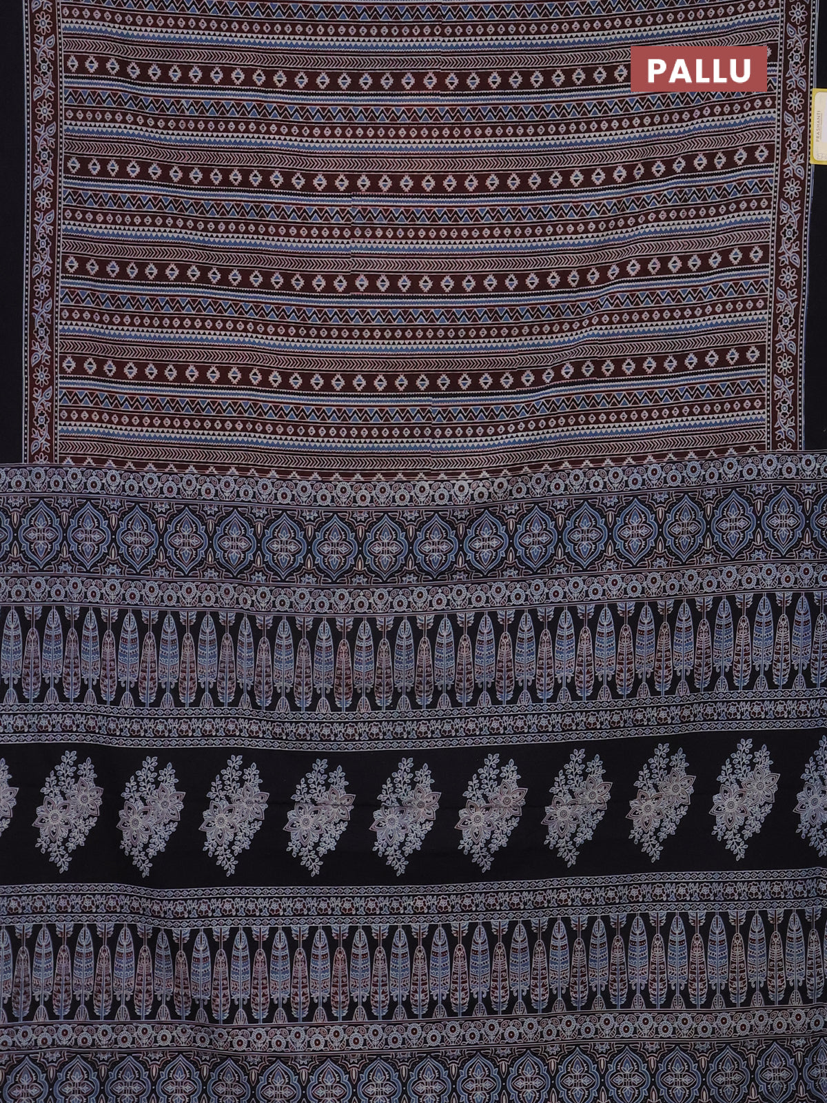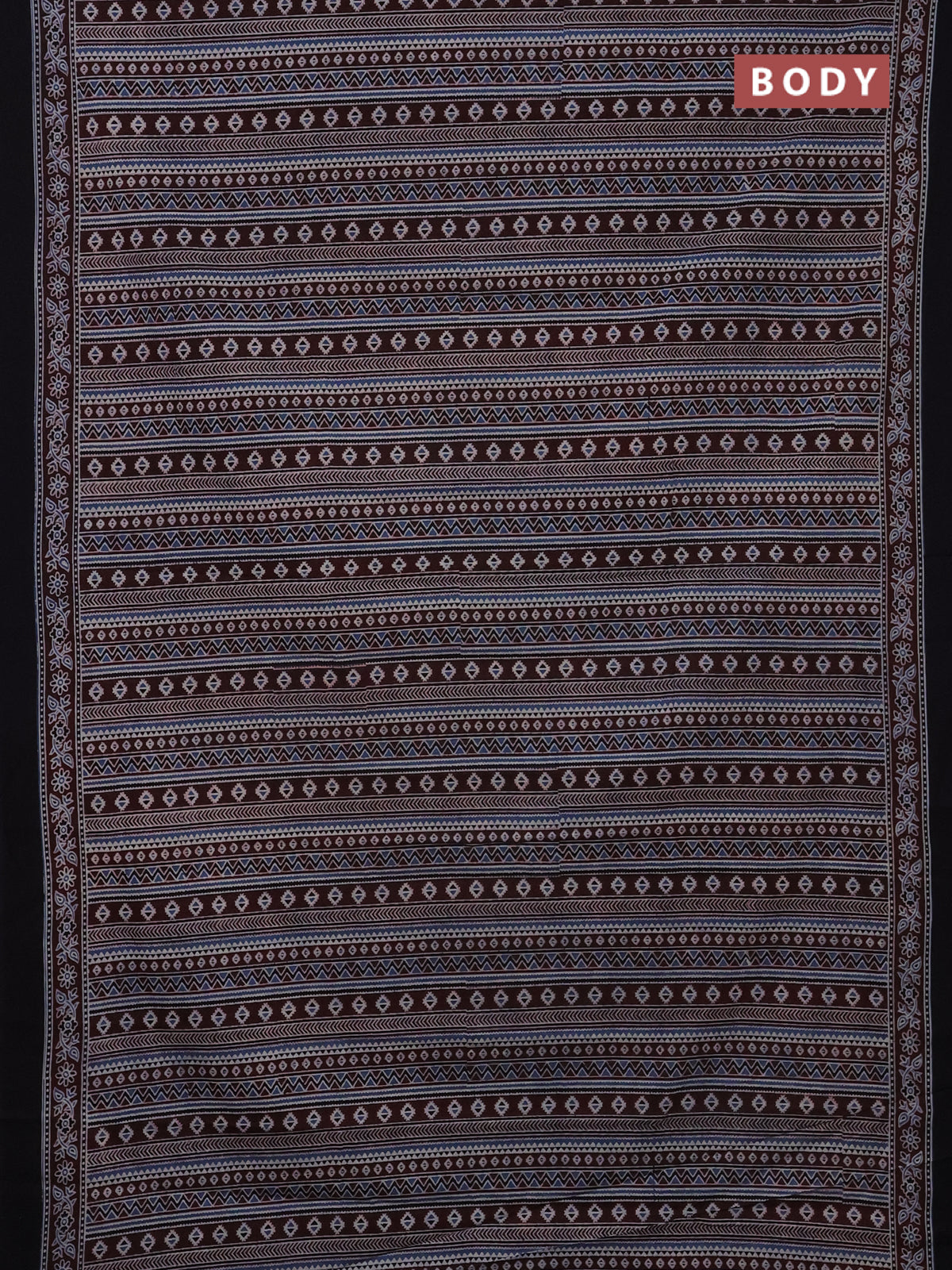 Jaipur cotton saree marron and black with allover ajrakh prints and printed border