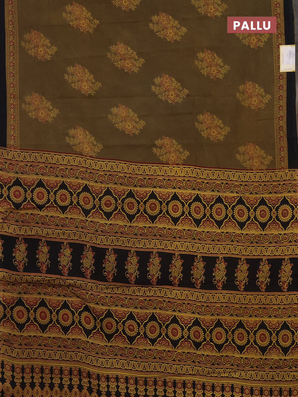 Jaipur cotton saree mehendi green and black with butta prints and printed border