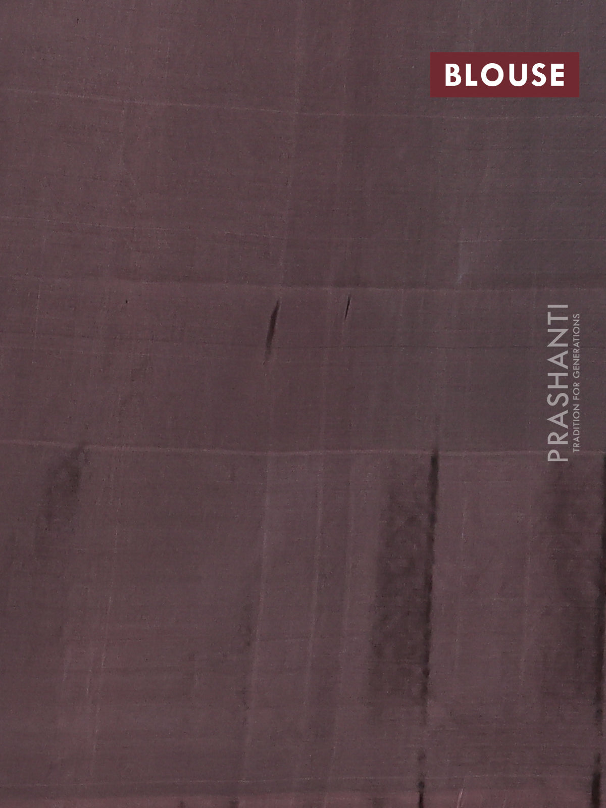 Kanchipuram soft silk saree teal green and pastel brown with allover zari stripe pattern and long rich zari woven border