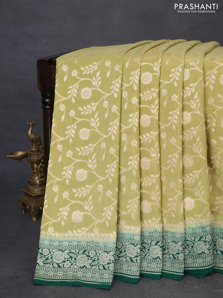 Banarasi crepe saree pista green and green with allover thread & zari weaves and woven border