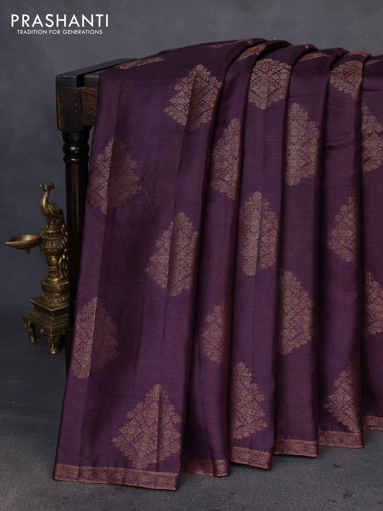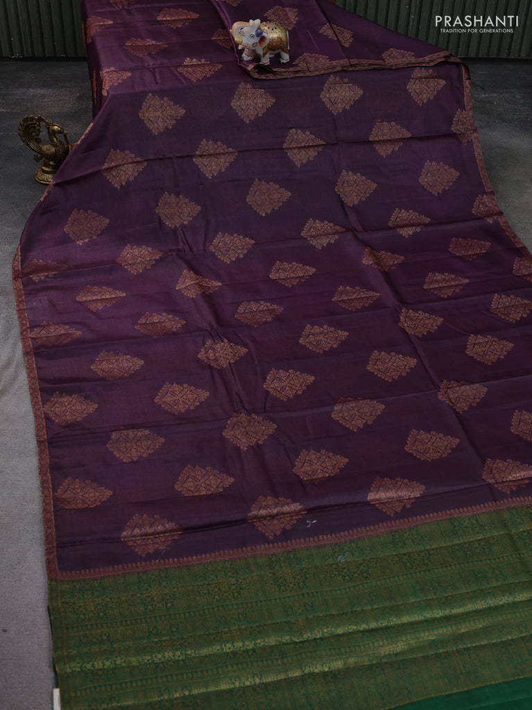 Banarasi tussar silk saree purple and green with thread & zari woven buttas and woven border