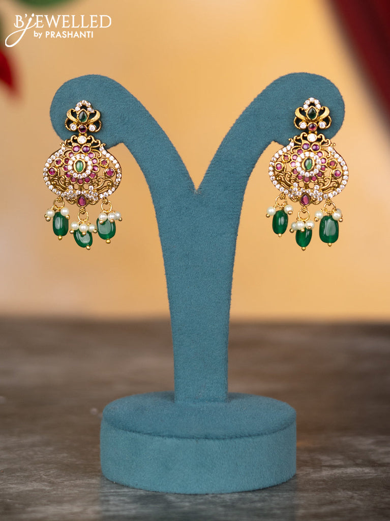 Antique necklace with kemp & cz stones and pearl & green beads hangings