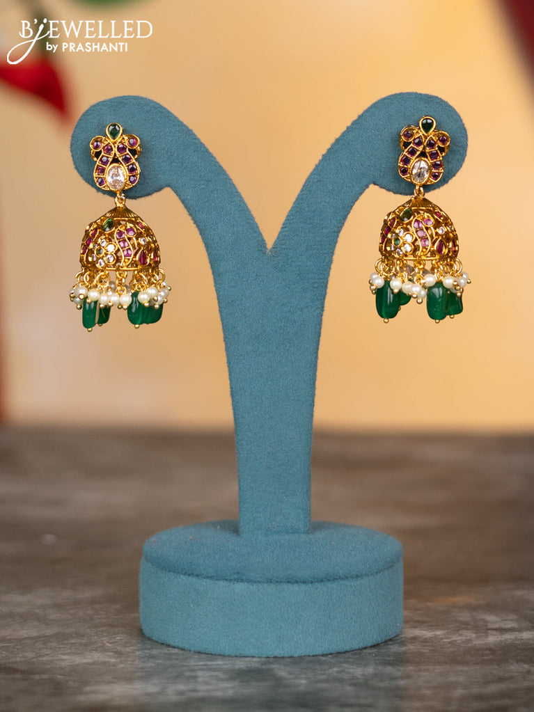 Antique necklace peacock design with kemp & cz stones and pearl & green beads hangings