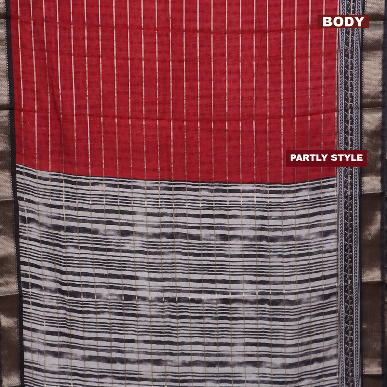 Assam partly silk saree maroon and black with digital prints & zari weaves and zari woven border