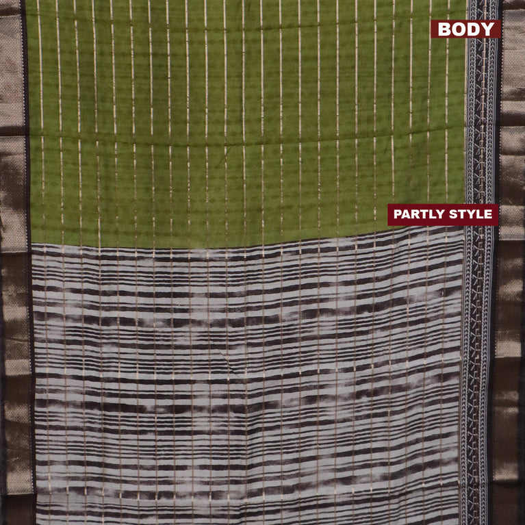 Assam partly silk saree mehendi green and black with digital prints & zari weaves and zari woven border