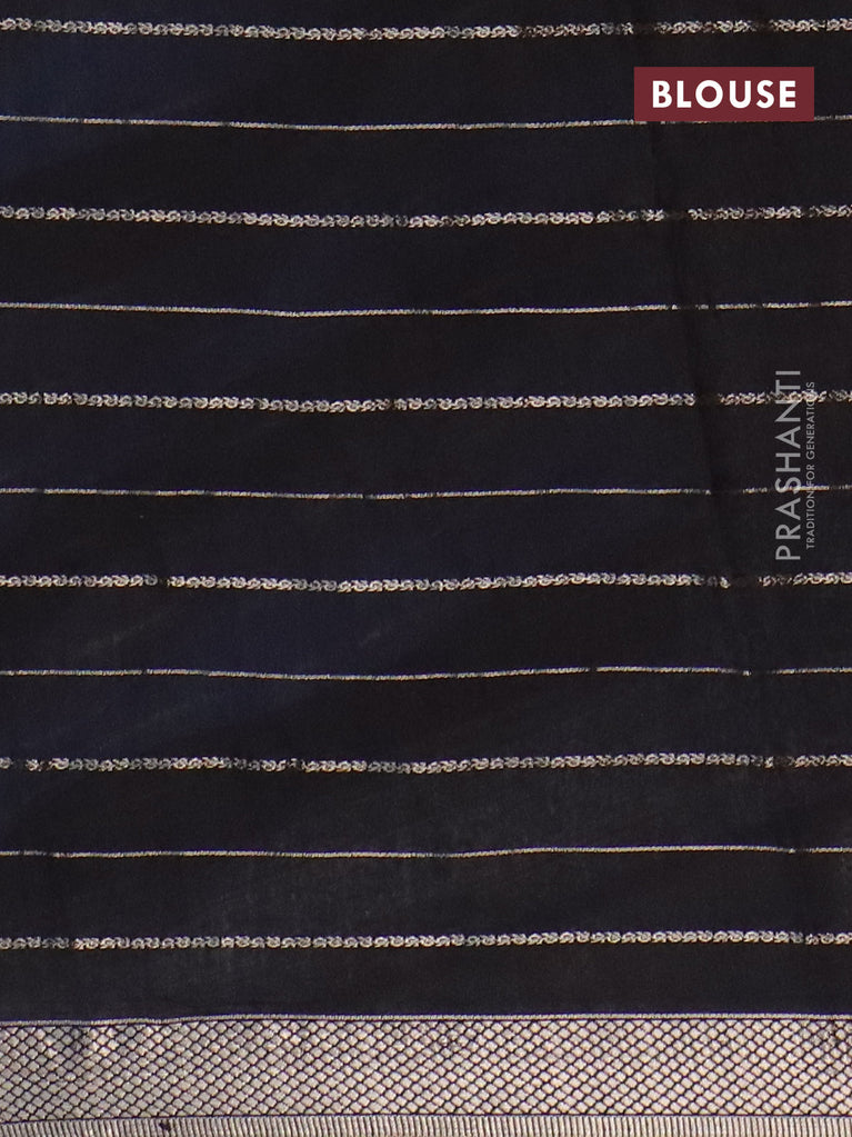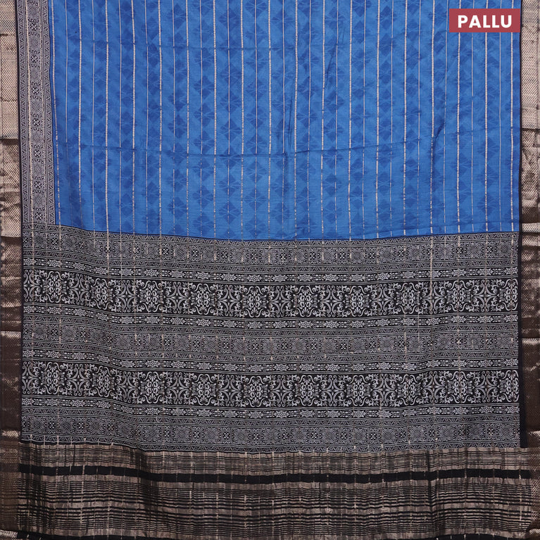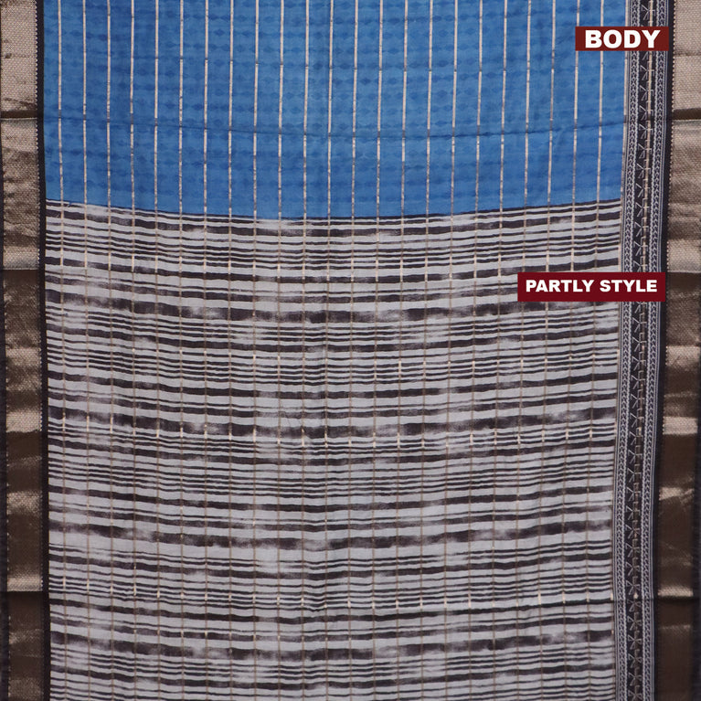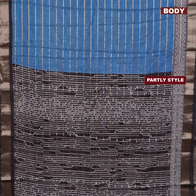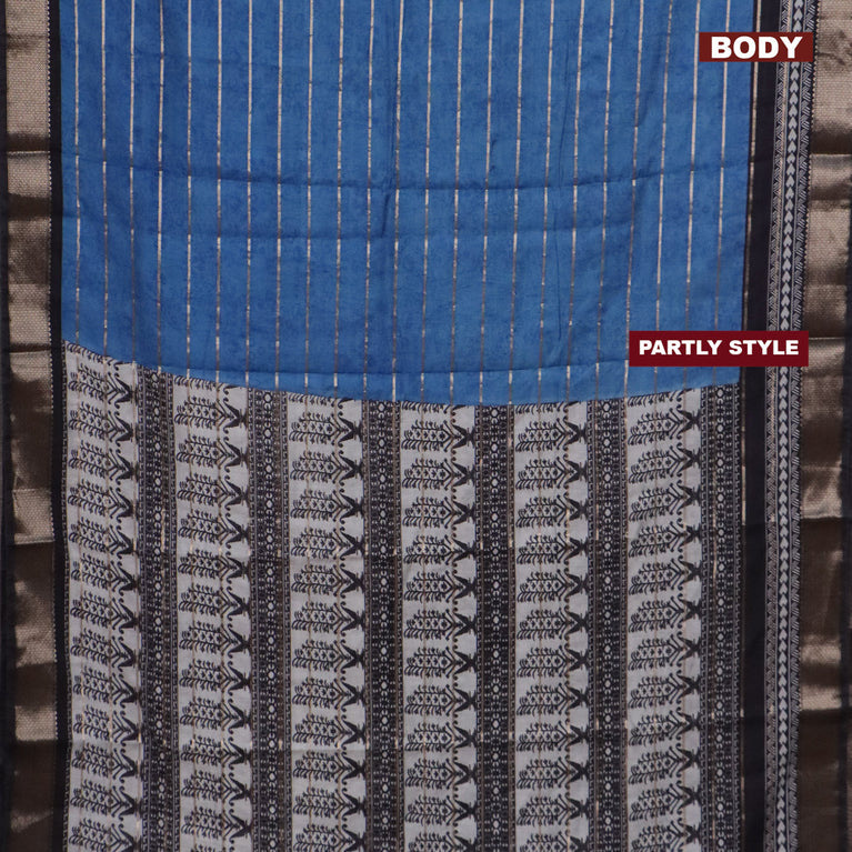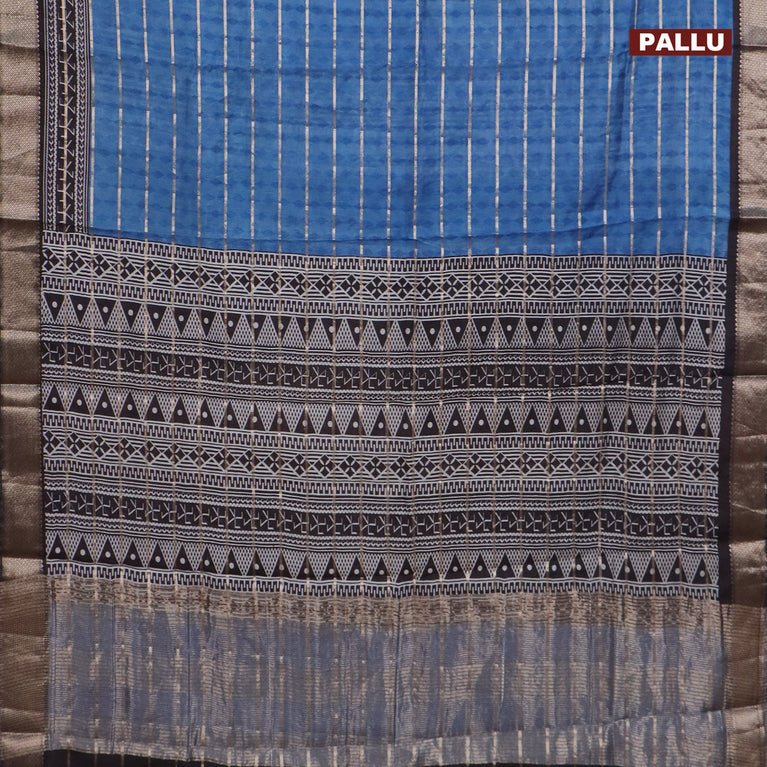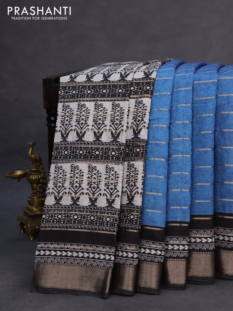 Assam partly silk saree blue and black with allover digital prints & zari weaves and zari woven border